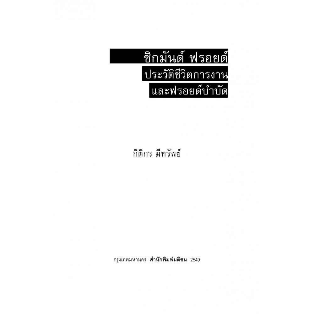 บอกเล่าตำนานบุคคลสำคัญทางวิชาแพทย์ที่ยังคงติดตรึงหัวใจผู้ยังรักและเฝ้าศึกษาเรื่องราวของจิตใจ และพฤติกรรมมนุษย์ตราบจนทุกวันนี้... "ซิกมันด์ ฟรอยด์" ...ยอดอัจฉริยะเจ้าของทฤษฎีจิตวิเคราะห์ที่สามารถเข้าใจถึงก้นบึ้งหัวใจและพฤติกรรมเชื่อมโยงงานของมนุษย์กว่าทฤษฎีหรือองค์ความรู้ที่มีคุณค่าจะปรากฏ ฟรอยด์ต้องฟันฝ่าอุปสรรคชีวิตมากมายทั้งความอดทนต่อความทุกข์ ความโดดเดี่ยว และแม้แต่การไร้ซึ่งมิตรภาพที่แลกมาด้วยความสำเร็จในหน้าที่การงาน สารบัญ 1. วัยเด็ก วัยเรียน 2. วัยหนุ่ม 3. วัยทำงาน แต่งงาน-วัยแสวงหา 4. กำเนิดจิตวิเคราะห์และชมรมวันพุธ 5. สมาคมจิตวิเคราะห์แห่งเวียนนนา สภาจิตวิเคราะห์นานาชาติ 6. แตกแยกกับแอดเลอร์-จุง และบินสแวงเกอร์ 7. สงครามโลกครั้งที่ 1 และทุกข์โศกสาหัส 8. ความงอกงามแห่งการงาน 9. สงครามโลกครั้งที่ 2 สมาคมจิตวิเคราะห์ถูงเพ่งเล็ง และลาก่อนเวียนนา ไปตายที่ลอนดอน