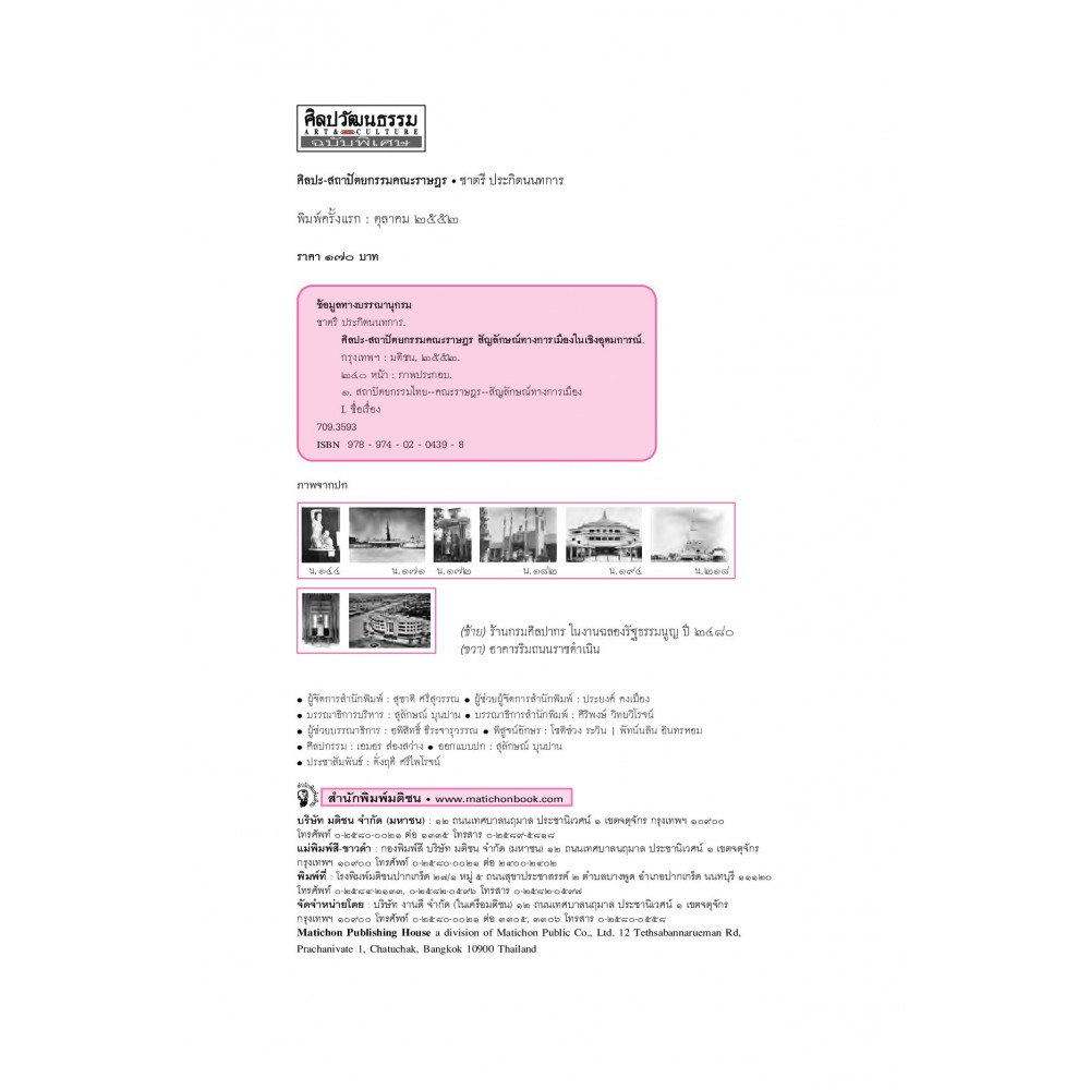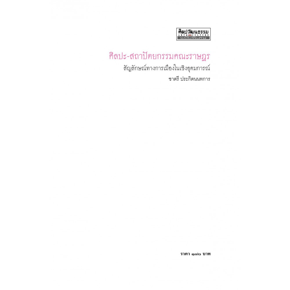 รวมบทความงานศึกษาประวัติศาสตร์สถาปัตยกรรมสมัยใหม่ในช่วง พ.ศ. ๒๔๗๕-๒๔๙๐ ซึ่งทำหน้าที่เป็นสัญลักษณ์ทางการเมืองในเชิงอุดมการณ์บางอย่างที่มีลักษณะเฉพาะตัว จนสามารถแยกออกมาเป็นยุคสมัยทางศิลปะและสถาปัตยกรรมอีกยุคสมัยหนึ่ง ซึ่งผู้เขียนได้นิยามชื่อเรียกใหม่ว่า ศิลปะและสถาปัตยกรรมคณะราษฎร เป็นที่น่าเสียดายนักวิชาการทางประวัติศาสตร์ศิลปะและสถาปัตยกรรม ต่างพากันละเลยหรือหลงลืมที่จะศึกษาและประเมินผลกระทบจากการปฏิวัติ ๒๔๗๕ ที่มีต่อวงการศิลปะและสถาปัตยกรรม สาเหตุของการละเลย ผู้เขียนกล่าวว่า คงต้องพิจารณาในบริบททางประวัติศาสตร์การเมืองเป็นสำคัญ โดยเฉพาะแนวความคิดและอุดมการณ์ทางการเมืองหลังการล่มสลายของคณะราษฎร และการกลับมาของกลุ่มอนุรักษ์นิยม จวบจนถึงปัจจุบัน ซึ่งมีลักษณะที่เป็นคู่ตรงข้ามกับแนวคิดและอุดมการณ์ของคณะราษฎรอย่างชัดเจน