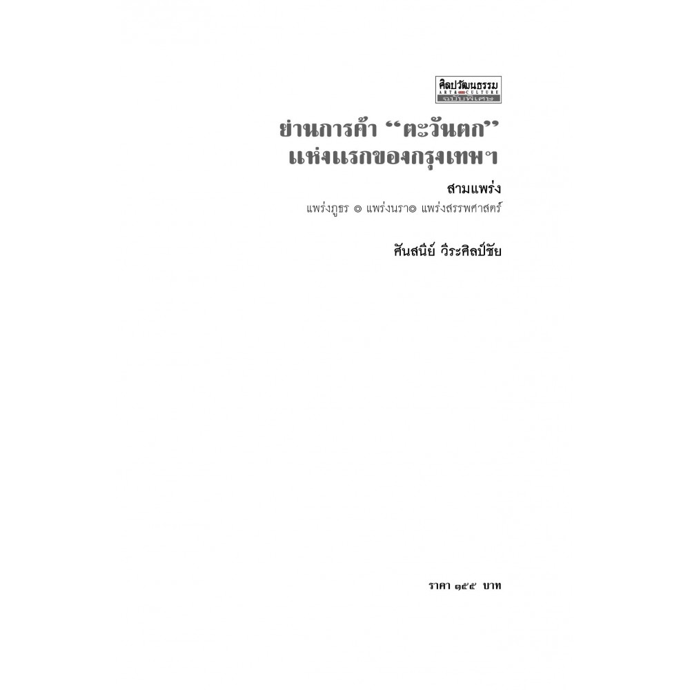 ย่านการค้าตะวันตกแห่งแรกของกรุงเทพฯ บริเวณ "สามแพร่ง" เมื่อครั้งยังเป็นที่ตั้งวังอยู่นั้น เป็นชุมชนกลางใจเมืองที่มีความเจริญที่สุดแห่งหนึ่งของกรุงเทพฯ ผู้เขียน ศันสนีย์ วีระศิลป์ชัย บริเวณ "สามแพร่ง" เมื่อครั้งยังเป็นที่ตั้งวังอยู่นั้น เป็นชุมชนกลางใจเมืองที่มีความเจริญที่สุดแห่งหนึ่งของกรุงเทพฯ แพร่งทั้งสามเป็นย่านการค้าที่รุ่งเรืองมาแต่เมื่อเริ่มตัดถนนสามสายแรก และยิ่งเจริญมากขึ้นเป็นทวีคุณในสมัยรัชกาลที่ 5 เมื่อชาวต่างประเทศพากันเข้ามาตั้งห้างร้านจำหน่ายสินค้าจากต่างประเทศ ในอดีต บริเวณนี้เคยเป็นที่ตั้งวังของเจ้านาย 3 พระองค์ คือ พระเจ้าบรมวงศ์เธอ กรมหมื่นภูธเรศธำรงศักดิ์, พระเจ้าบรมวงศ์เธอ กรมพระนราธิปประพันธ์พงศ์ และ พระเจ้าบรมวงศ์เธอ กรมหลวงสรรพศาสตร์ศุภกิจ ปัจจุบันคือถนนแพร่งภูธร ถนนแพร่งนรา และถนนแพร่งสรรพศาสตร์ หรือที่รู้จักกันในนาม "สามแพร่ง" นับเป็นย่านการค้า "ตะวันตก" แห่งแรกของกรุงเทพฯ สารบัญ - ก่อนจะเป็นวัง - วังทั้งสาม - รอบ ๆ วัง - ย่านการค้า - บุคคลสำคัญในย่าน - ละครปรีดาลัย - พาหนะ - บรรยากาศรอบ ๆ วัง - การแต่งกาย - ศาลาโรงธรรม - กลางคืน - เสียง - การเปลี่ยนแปลง