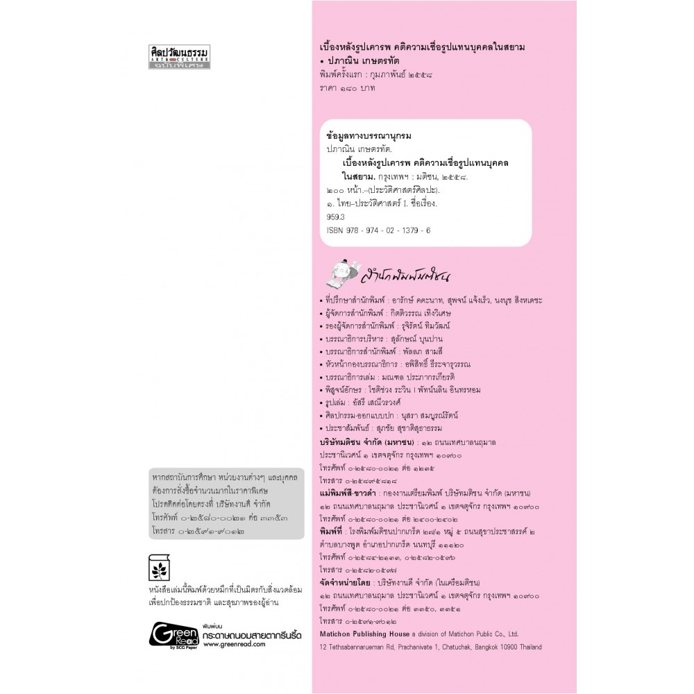 "เบื้องหลังรูปเคารพ คติความเชื่อรูปแทนบุคคลในสยาม" เล่มนี้ ตีแผ่คติความเชื่อการสร้างรูปเคารพในอดีต โดยในระยะแรกจะอยู่ในรูปแบบพระพุทธรูป "แทนบุคคล" กล่าวคือสร้างพระพุทธรูปเพื่ออุทิศให้กับบุคคล ซึ่งแม้ว่าจะอยู่ในพุทธศาสนา หากแต่แท้จริงแล้วยังเป็นคติความเชื่อของพุทธ-พราหมณ์และผี ที่ทับซ้อนกันอยู่ ต่อมาพัฒนาเป็นรูปเคารพ "เหมือนคน" คือการสร้างรูปเคารพที่เป็นรูปเหมือนคนจริงตามหลักกายวิภาค ตามแนวคิดสมจริงที่เข้ามาแล้วก่อนสมัยรัชกาลที่ 4 หนังสือเล่มนี้จะทำให้ผู้อ่าน "ตาสว่าง" เกี่ยวกับคติความเชื่อการสร้างรูปเคารพในอดีต
