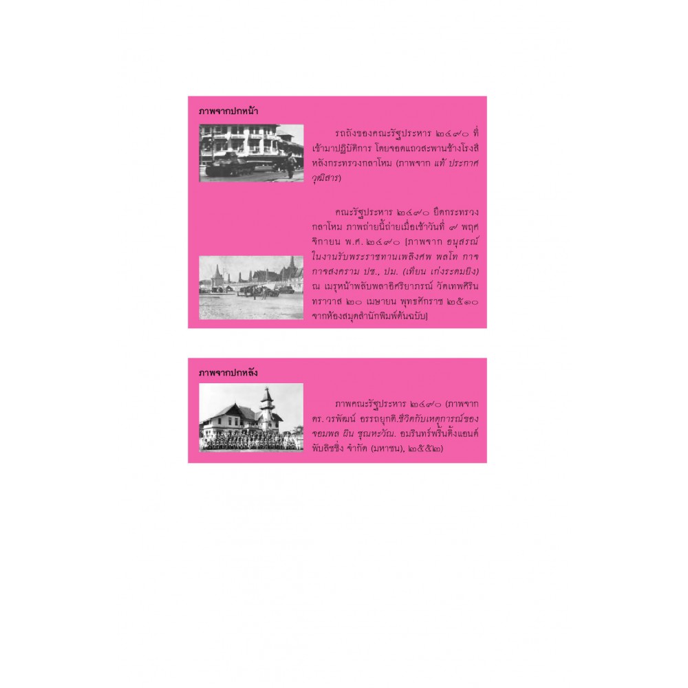 หนังสือเล่มนี้ว่าด้วย "การรัฐประหาร" ในปี พ.ศ.2490 ซึ่งถือว่าเป็นการเปลี่ยนโฉมหน้าประวัติศาสตร์ทางการเมืองการปฏิวัติครั้งนี้ นำโดย "จอมพล ผิน ชุณหะวัณ" โดยมีกองทัพบกเป็นกำลังหลักในการปฏิวัติครั้งนี้ และทำให้คณะราษฎรหมดบทบาทในทางการเมืองตั้งแต่นั้นมา ดังที่ "อ.ทักษ์ เฉลิมเตียรณ" อธิบายไว้ว่า หลังการทำรัฐประหาร 2490 สำเร็จ สิ่งที่เกิดขึ้นคือการก้าวขึ้นมามีบทบาทนำและครอบงำการเมืองไทยต่อไปของกลุ่มทหารรุ่นใหม่ ซึ่งต่างจากฝ่ายนำของคณะราษฎร คณะทหารไม่ได้ผ่านการศึกษาและมีประสบการณ์ในเรื่องประชาธิปไตยแบบตะวันตกในประเทศเสรีนิยม หากแต่พวกเขาทั้งหมดเป็นผลิตผลของการศึกษาการทหารในประเทศไทยเอง นายทหารรุ่นใหม่เหล่านี้จึงแทบไม่มีประสบการณ์และความรับรู้ในจารีตของระบบประชาธิปไตยในสังคมตะวันตกมาก่อนเลย หนังสือเล่มนี้จึงเป็นการวิเคราะห์ที่มาที่ไปของการปฏิวัติในครั้งนั้น