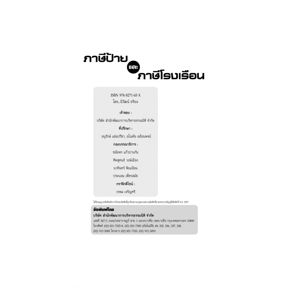 ในการทำธุรกิจผู้ประกอบการจะต้องมีหน้าที่เสียภาษีป้าย ภาษีโรงเรือนและที่ดิน หนังสือเล่มนี้รวบรวมแนวปฏิบัติ หลักเกณฑ์และเงื่อนไขต่างๆ ในระบบภาษี คำพิพากษาฎีกาย่อประกอบ ที่ผู้ประกอบการต้องทราบ
