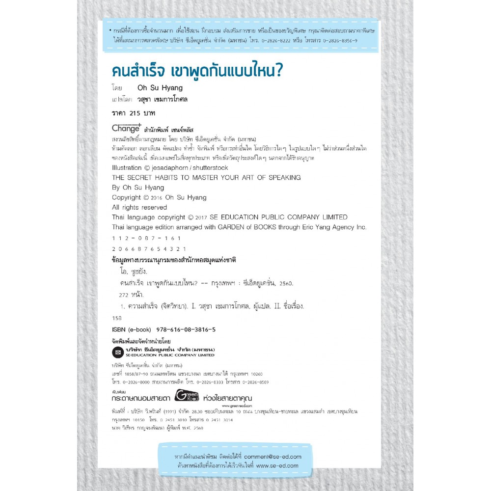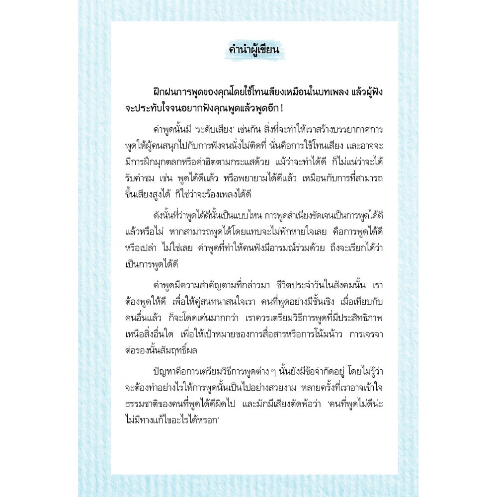 คู่มือช่วยให้คุณสำเร็จทุกด้านด้วยการพูด ตีแผ่เคล็ดลับการพูดที่คุณไม่เคยรู้! ไม่ว่าจะเป็น วิธีเสกมนตร์ให้ตัวเองมีความมั่นใจ คำพูดที่ทำให้เพศตรงข้ามหลงใหล คำพูดที่ชักจูงฝ่ายตรงข้ามได้ คำพูดที่ช่วยล้วงความลับอีกฝ่าย วิธีช่วยฝึกน้ำเสียง และอีกหลากหลายเรื่องราวน่ารู้ เพียงแค่พยายามฝึกฝนตามวิธีการที่ให้ไว้ คุณจะเป็นมือหนึ่งด้านการพูดที่ทุกวันมีแต่ความสำเร็จได้อย่างแน่นอน