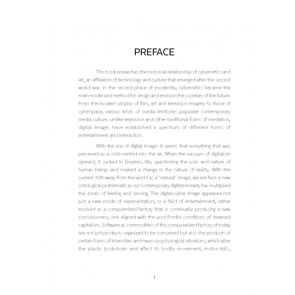 This book researches the historical relationship of cybernetics and art, an affiliation of technology and culture that emerged after the second world war,. In the second phase of modernity, cybernetics became the main model and method for design and envision the societiess of the future. From the modern utopias of film, art and television imagery to those of cyberspace, various kinds of media territories populate contemporary media culture. Unlike television and other traditional forms of mediation, digital image have established a spectrum of different forms of entertainment and interaction.