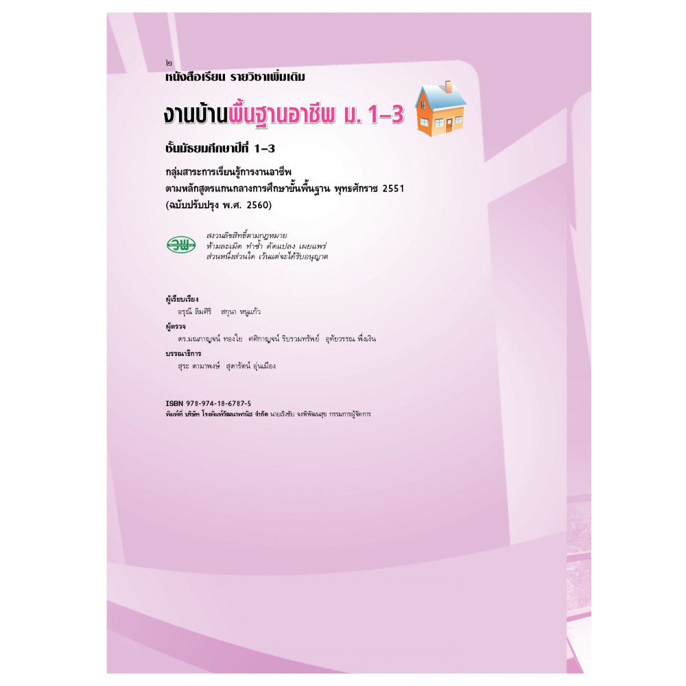 แบบเรียน เพิ่มเติม งานบ้านพื้นฐานอาชีพ ม.1-3