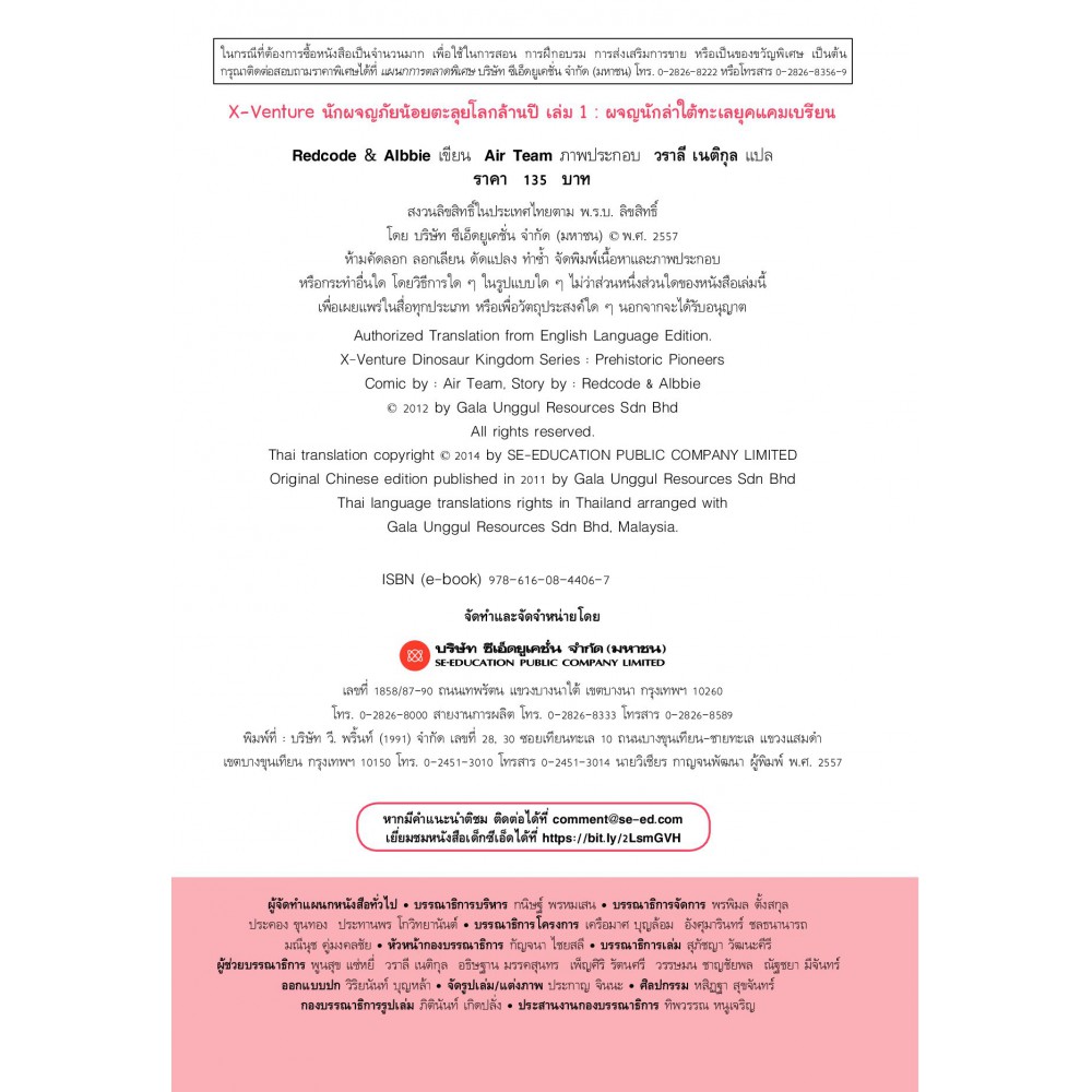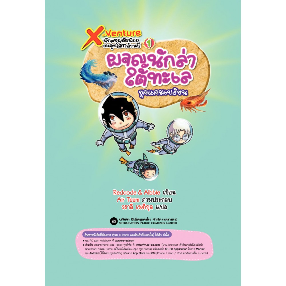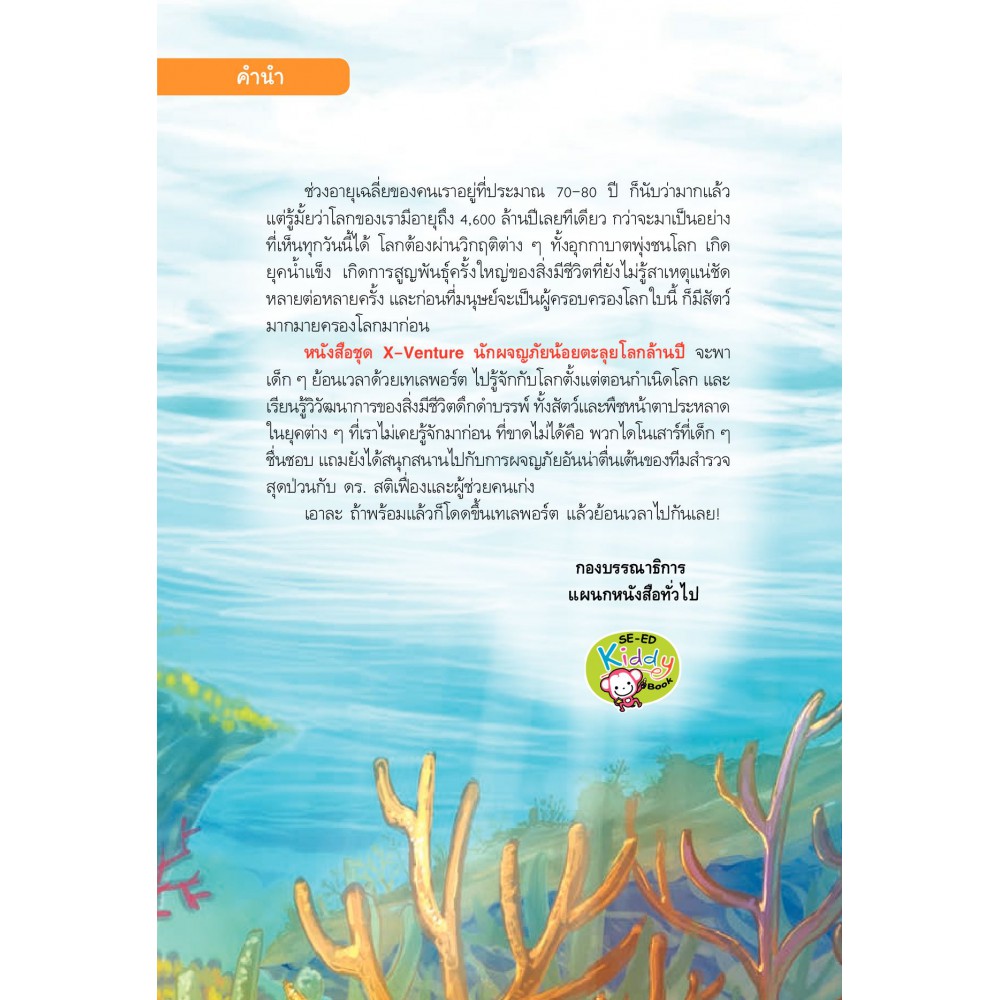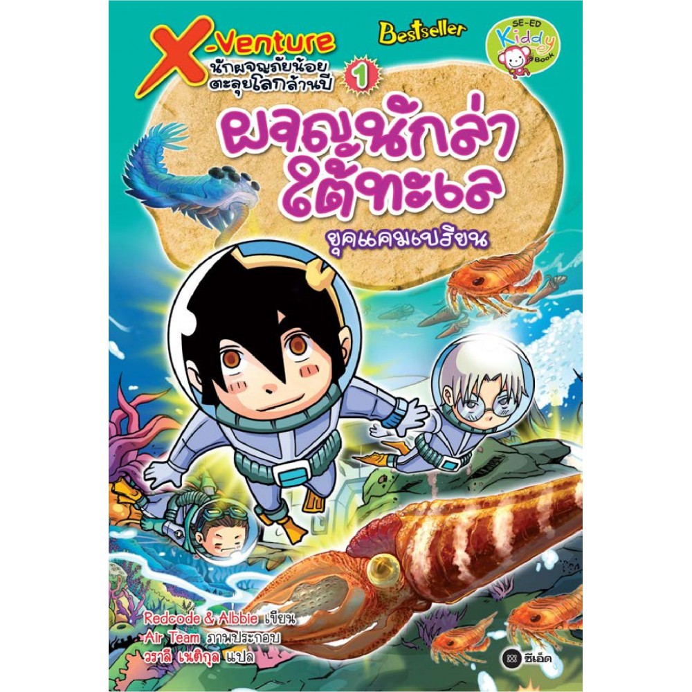 เกิดแผ่นดินไหวรุนแรงจนเครื่องเทเลพอร์ตขัดข้อง ทำให้ทีมสำรวจ X-Venture ต้องย้อนเวลาไปติดอยู่ในยุคแคมเบรียน เมื่อ 542 ล้านปีก่อนโดยไม่คาดฝัน! แต่ก่อนจะได้กลับสู่ยุคปัจจุบัน พวกเขาต้องออกสำรวจโลกใต้ทะเล ที่เต็มไปด้วยสัตว์ดึกดำบรรพ์หน้าตาประหลาด แถมยังเผชิญหน้ากับนักล่าที่ดุร้าย มาลุ้นกันว่าสุดท้ายพวกเขาจะหนีรอดจากเหล่าอสุรกายใต้ทะเลและได้กลับบ้านอย่างปลอดภัยหรือไม่ ติดตามได้ใน "X-Venture นักผจญภัยน้อยตะลุยโลกล้านปี เล่ม 1 : ผจญนักล่าใต้ทะเลยุคแคมเบรียน"