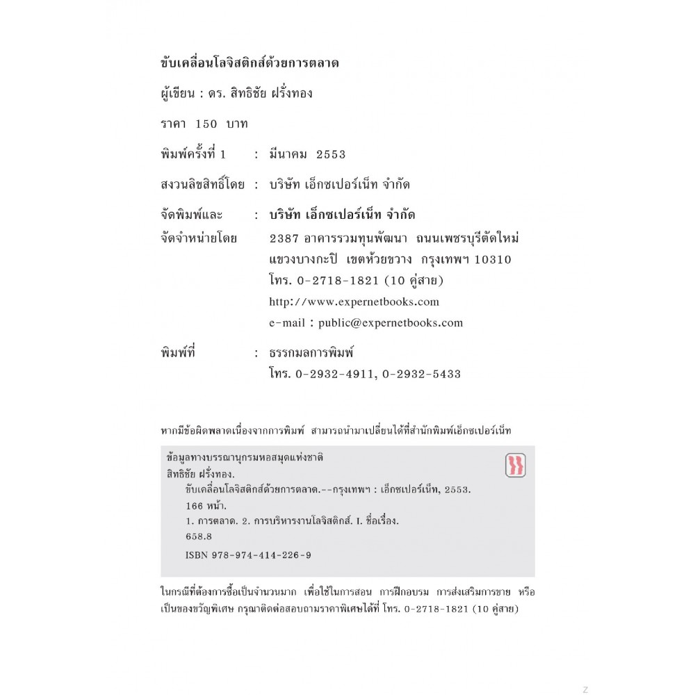 "ท่ามกลางสมรภูมิการแข่งขันทางการค้าอันดุเดือดในยุคแห่งการเปิดเสรีทางการค้าทุกองค์กรธุรกิจต่างล้วนมุ่งหวังที่จะปรับปรุงและพัฒนาศักยภาพหน่วยงานโลจิสติกส์ของตนให้เหนือกว่าคู่แข่งคำถามคือ "คุณจะเหนือกว่าคู่แข่ง" ได้อย่างไร? หนังสือ...ขับเคลื่อนโลจิสติกส์ด้วยการตลาด...ได้นำเสนอวิธีผสมผสาน สุดยอดกลยุทธ์ทางการตลาดอย่างชาญฉลาดและแยบยล ที่จะช่วยเพิ่มพลัง และขับเคลื่อนโลจิสติกส์ให้มุ่งหน้าสู่ผลกำไรและชัยชนะให้กับองค์กรของคุณอย่างได้ผล !