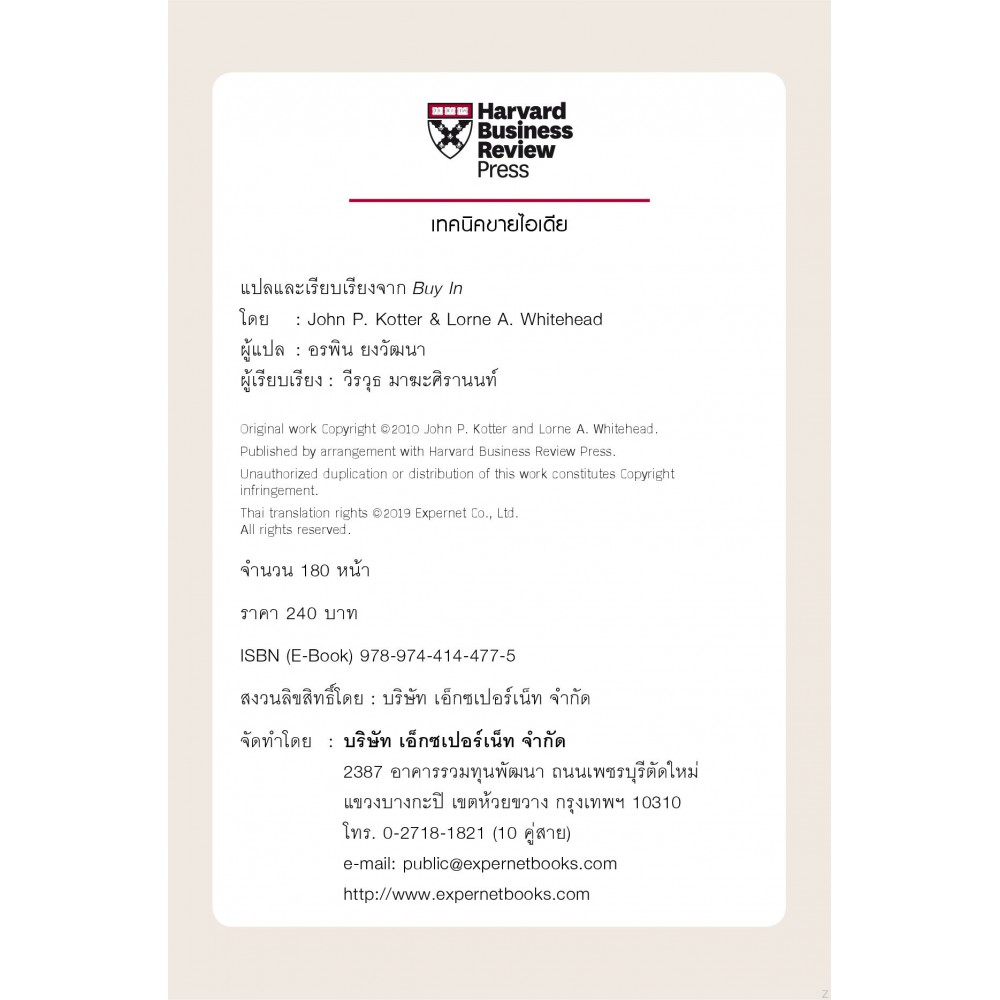 หนังสือที่คุณถืออยู่ในมื้อนี้จะทำให้คุณมี เทคนิคขายไอเดีย ไม่ว่าคุณจะนำเสนอโปรเจกต์พันล้าน นำเสนอไอเดียกับเพื่อนร่วมงาน หรือสนทนากับเพื่อนสนิทเพียงสองสามคน โดยไม่จำเป็นต้องมีวาทะศิลป์เลิศหรูหรือทักษะการเจรจาต่อรองขั้นเทพ พิสูจน์แล้วว่าใช้ได้ผลจริงกับทุกสถานการณ์...อ่านเลย รับรอง “โดน”"