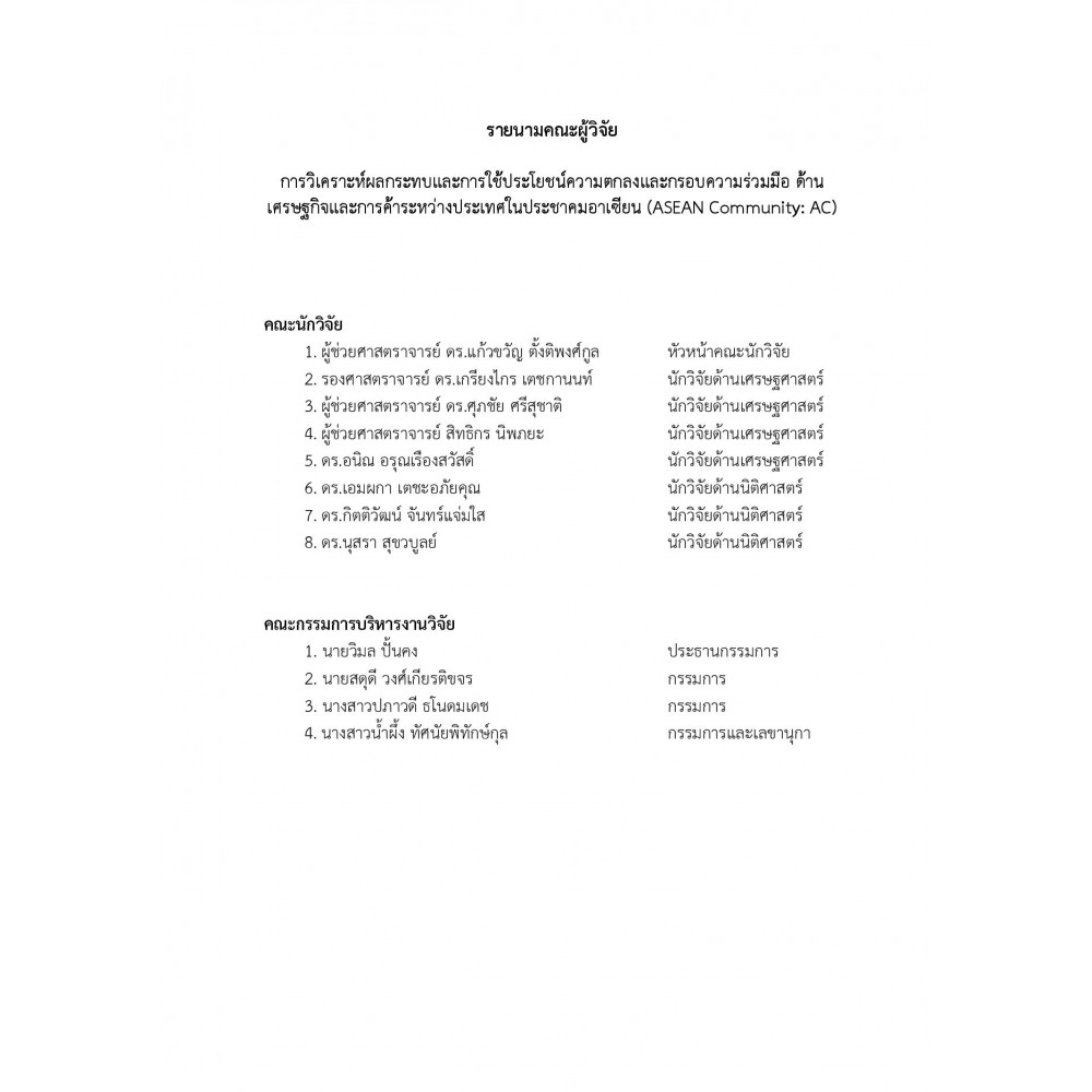การวิเคราะห์ผลกระทบและการใช้ประโยชน์ความตกลงและกรอบความร่วมมือด้านเศรษฐกิจ