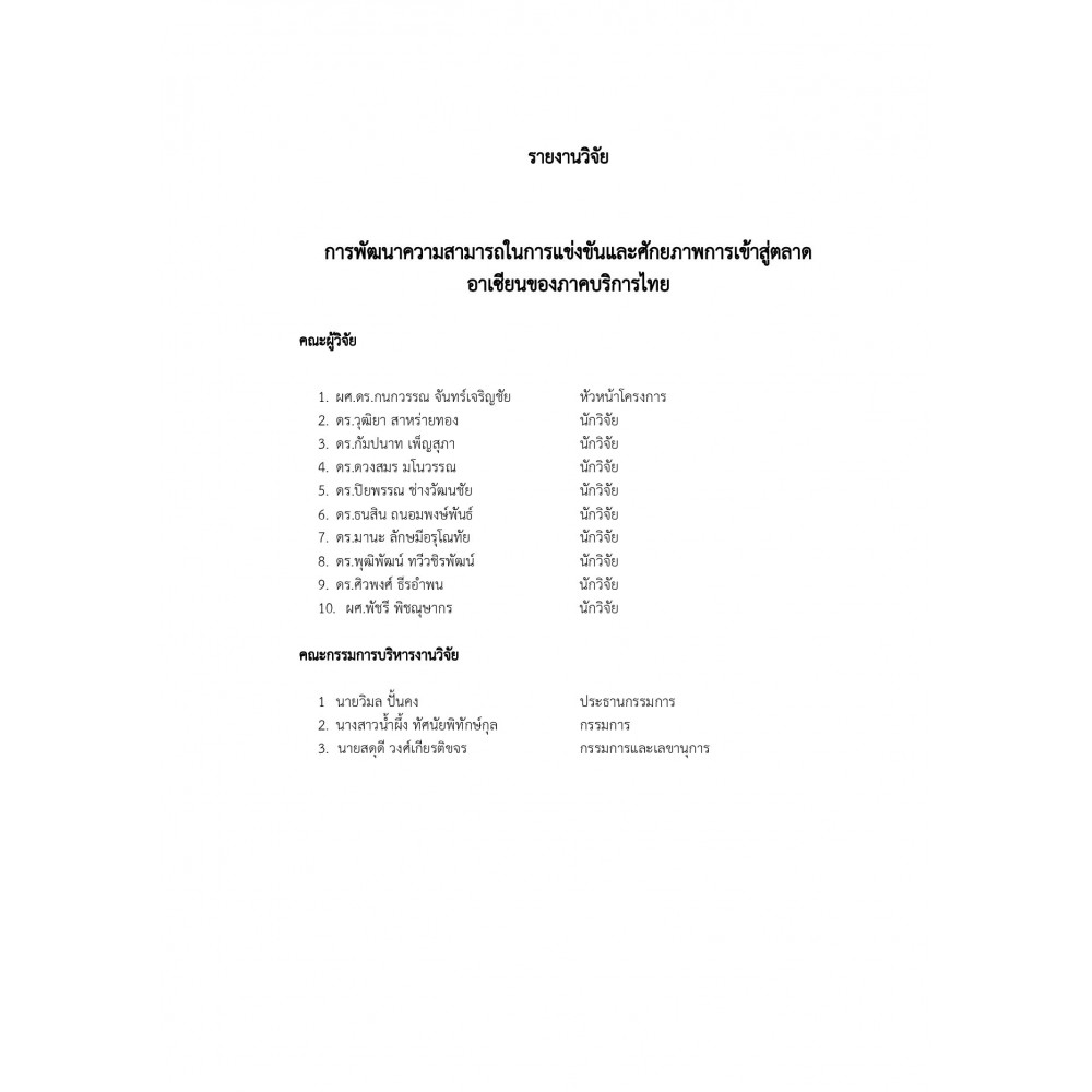 การพัฒนาความสามารถในการแข่งขันและศักยภาพการเข้าสู่ตลาดอาเซียนของภาคบริการไทย