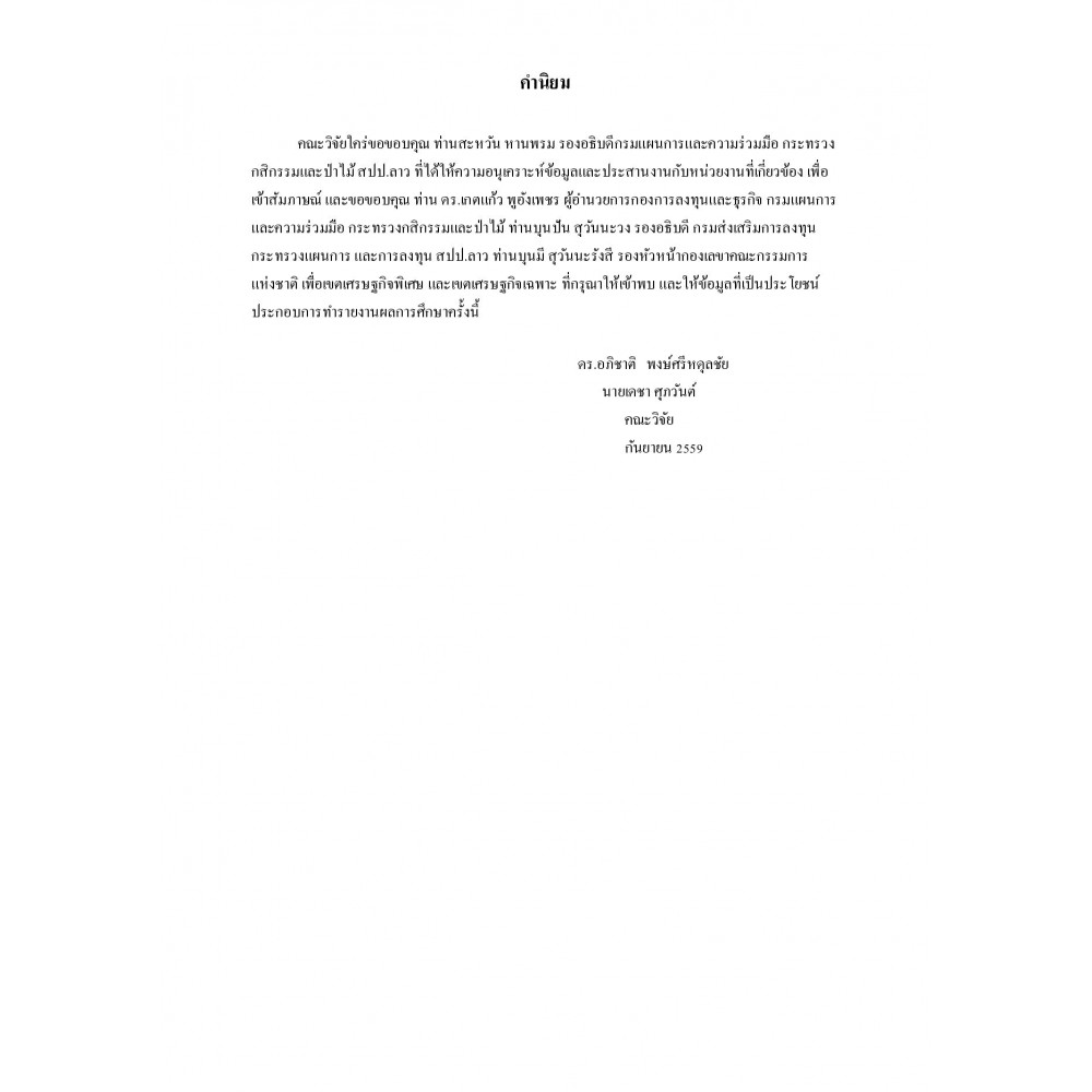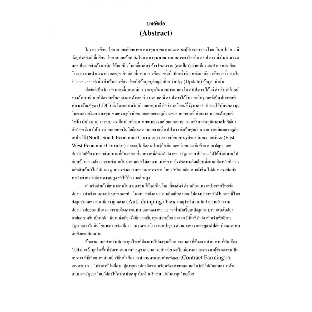 การศึกษาโอกาสและศักยภาพของการลงทุนภาคการเกษตรของผู้ประกอบการไทยใน สปป.ลาว