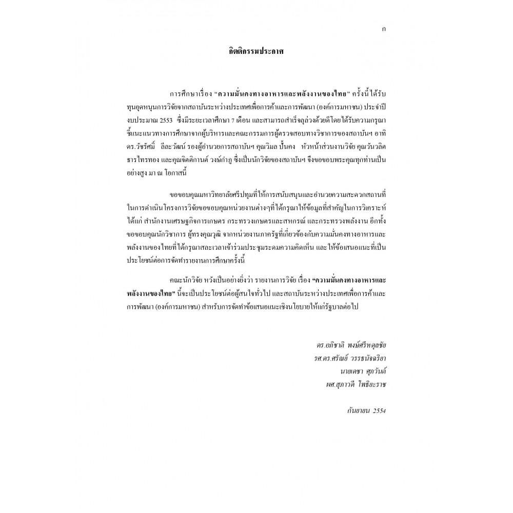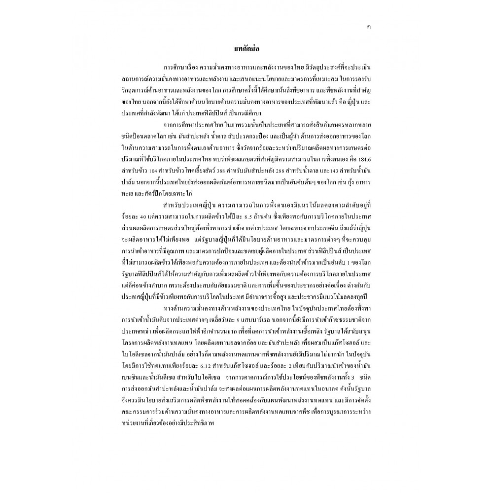 ความมั่นคงทางอาหารและพลังงานของไทย