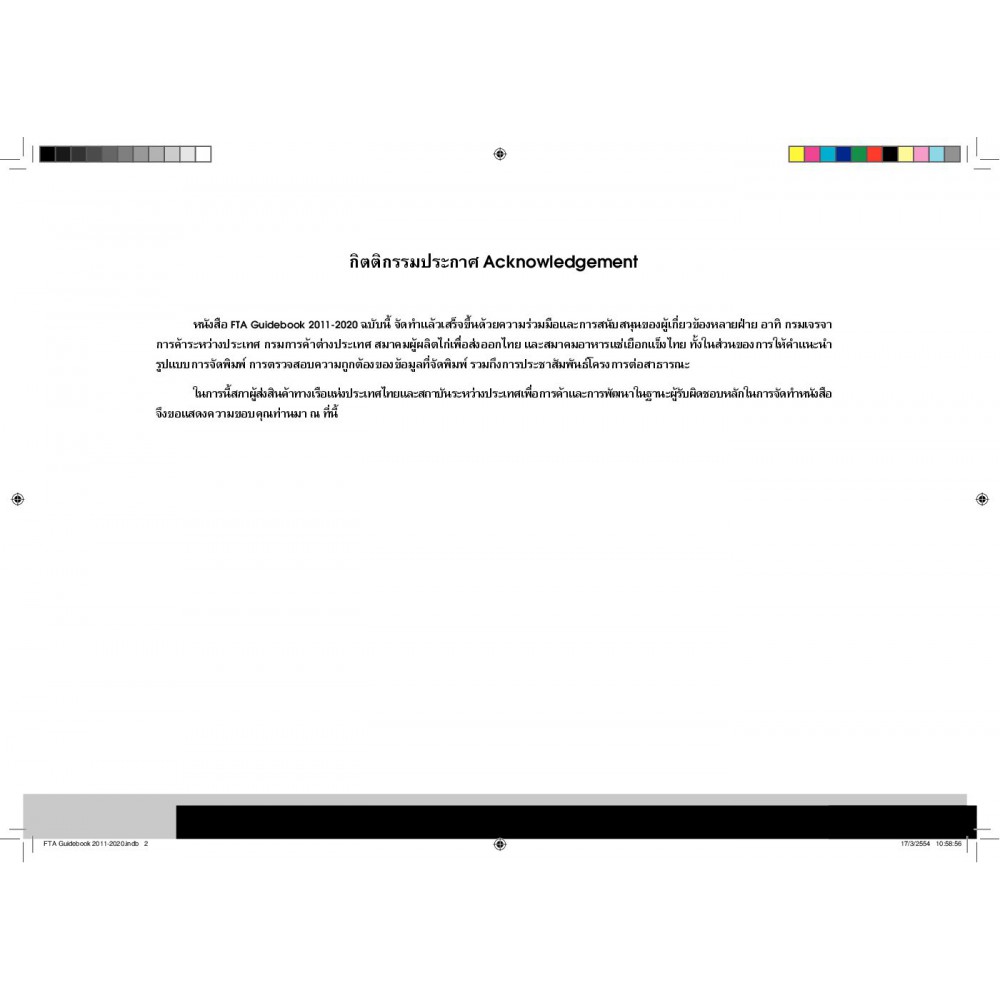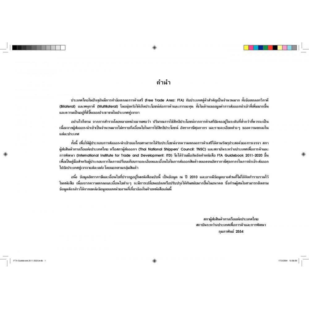 ประเทศไทยในปัจจุบันมีการทำข้อตกลงการค้าเสรี (Free Trade Area: FTA) กับประเทศคู้ค้าสำคัญเป็นจำนวนมาก ทั้งข้อตกลงทวิภาคี (Bilateral) และพหุภาคี (Multilateral) โดยมุ่งหวังให้เกิดประโยชน์ต่อการค้าและการลงทุน ทั้งในด้านของมูลค่าการส่งออกนำเข้าที่เพิ่มมากขึ้น และความเป็นอยู่ที่ดีขึ้นของประชาชนในประเทศคู่เจรจา ปีที่พิมพ์ : 2555