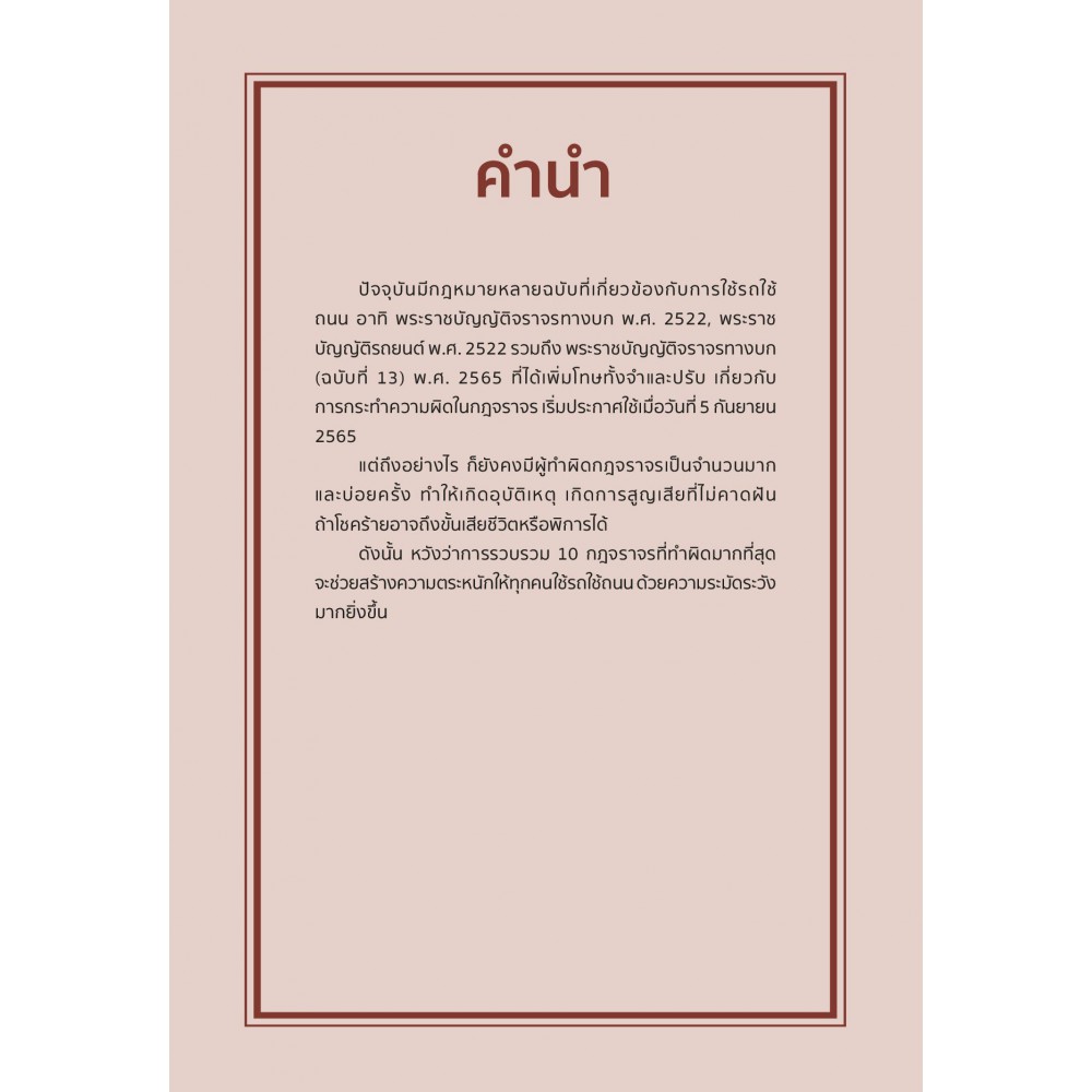 ปัจจุบันมีกฎหมายหลายฉบับที่เกี่ยวกับการใช้รถใช้ถนนแต่ก็ยังมีผู้ทำผิดกฎจราจรเป็นจำนวนมาก และบ่อยครั้งทำให้เกิดอุบัติเหตุอาจถึงขั้นเสียชีวิตหรือพิการได้ดังนั้น หวังว่าการวบรวม 10 กฎจราจรที่คนมักทำผิดจะช่วยสร้างความตระหนักให้ทุกท่านใช้รถใช้ถนนด้วยความระมัดระวังมากยิ่งขึ้น
