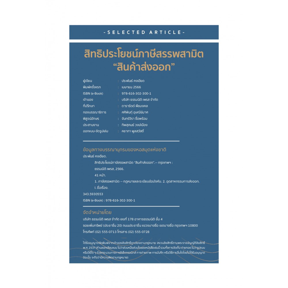 ข้อมูลและคำแนะนำในเล่มถือเป็นแนวทางให้ผู้ส่งออกได้ศึกษาและนำไปปฏิบัติได้