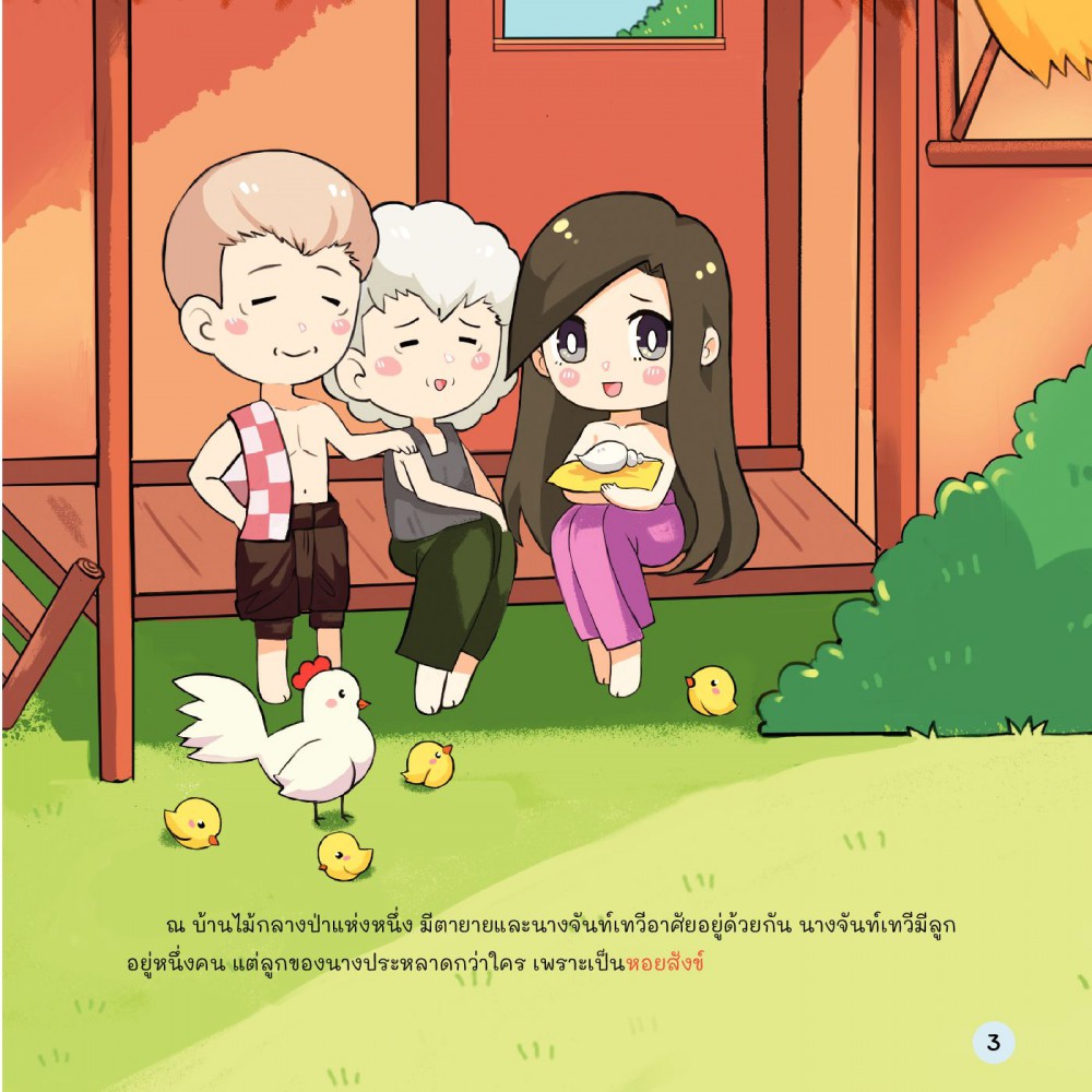 สังข์ทองอยู่ในเปลือกหอยมานาน พอโดนแดดนาน ๆ เข้าก็รู้สึกแสบผิว นางจันท์เทวีสงสารจึงเย็บชุดเงาะป่าให้ ผ่านไปไม่นานสังข์ทองเริ่มคันยุบยิบที่แขน จนเล่นน้ำกับเพื่อนไม่สนุก แถมยังมีรอยแดงและตุ่มเล็ก ๆ ผุดขึ้นเต็มไปหมด นี่มันเกิดอะไรขึ้นกันนะ