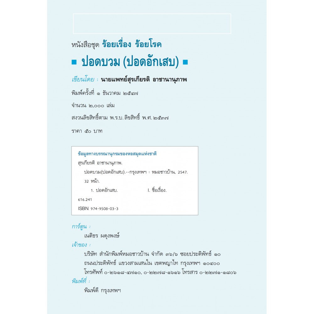 สำนักพิมพ์ : สำนักพิมพ์หมอชาวบ้าน
