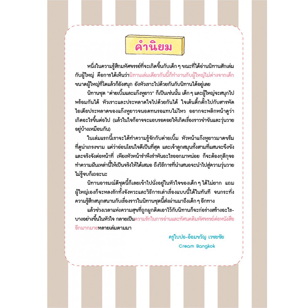 เล่มแรกนี้จะพามาทำความรู้จักกับเจ้าต่ายเบิ้ม หัวหน้าแก๊งหูยาวมาดขรึมที่ดูน่าเกรงข้ามแต่อ่อนโยนใจดีเป็นที่หนึ่ง และเจ้าลูกน้องทั้งสามที่ขึงขังกับการปฏิบัติหน้าที่ เพียงแต่หัวหน้ารำพึงรำพันอะไรออกมานิดหน่อย เหล่าสมุนก็กุลีกุจอทำความต้องการนั้นให้เป็นจริงได้เสมอ แม้วิธีการที่นำเสนอจะนำไปสู่ความวุ่นวายไม่รู้จบก็เถอะนะ