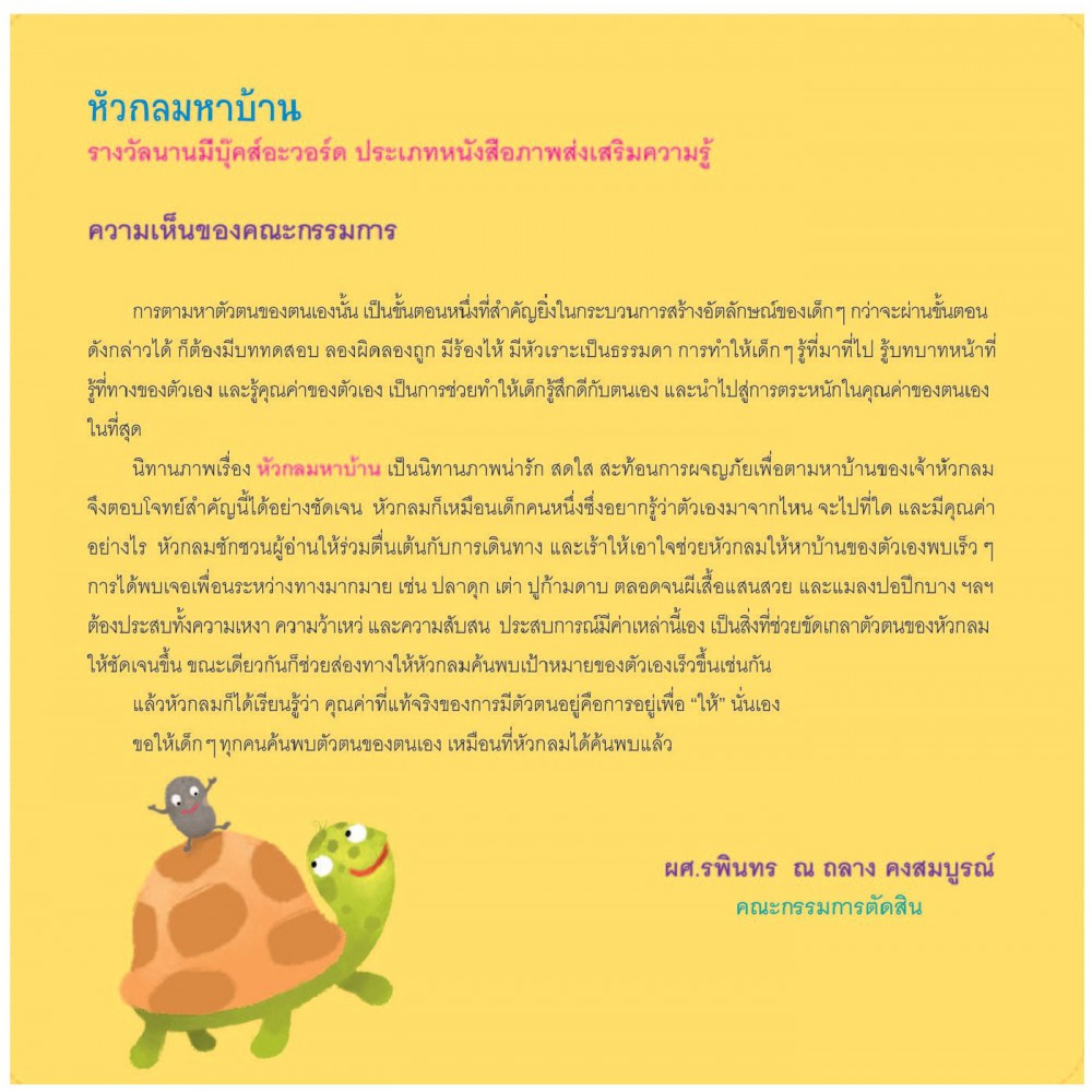 ดึ๋ง ดึ๋ง ดึ๋ง หัวกลมกระเด็นกระดอนหาบ้าน ที่ไหนที่เหมาะจะเป็นบ้านของหัวกลมกันนะ ชวนเด็ก ๆ เรียนรู้เรื่องพืชและที่อยู่อาศัยของสัตว์ชนิดต่าง ๆ พร้อมเอาใจช่วยให้หัวกลมหาบ้านของตัวเองจนเจอ