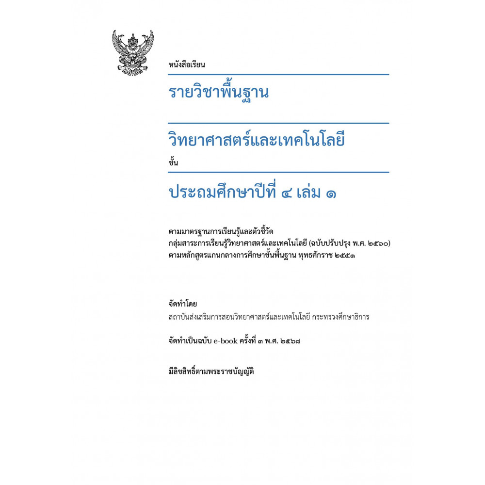 หนังสือเรียนรายวิชาพื้นฐานวิทยาศาสตร์และเทคโนโลยี ป.4 เล่ม 1