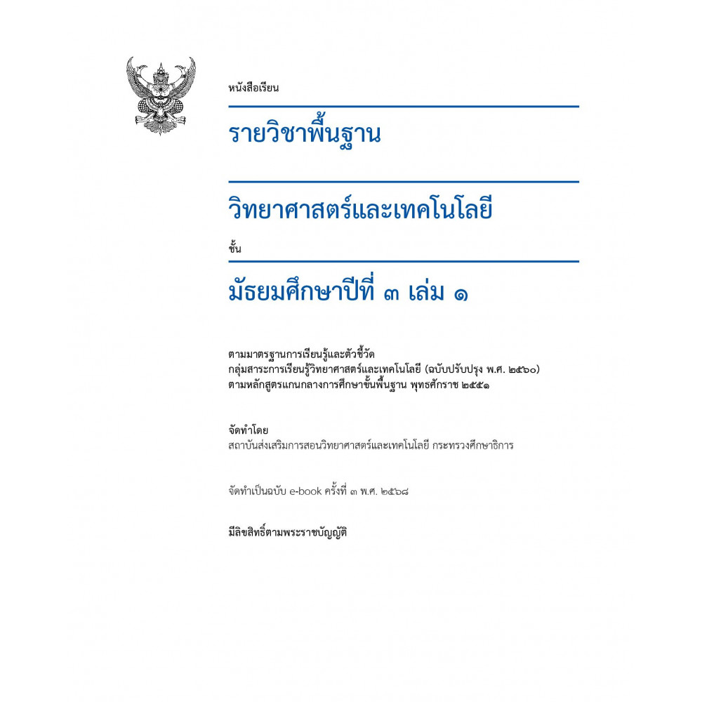 หนังสือเรียนรายวิชาพื้นฐานวิทยาศาสตร์และเทคโนโลยี ม.3 เล่ม 1