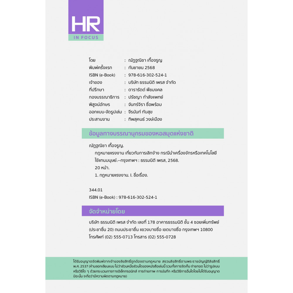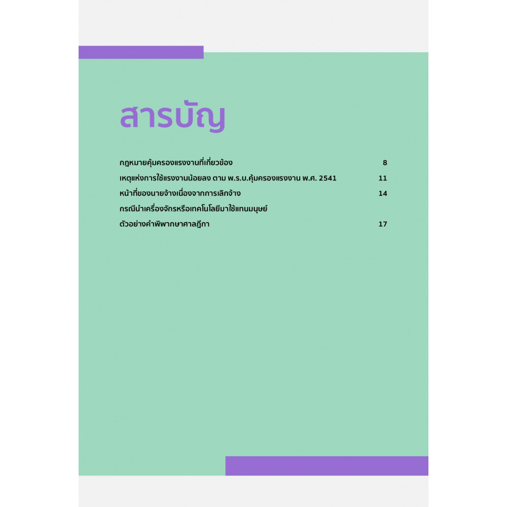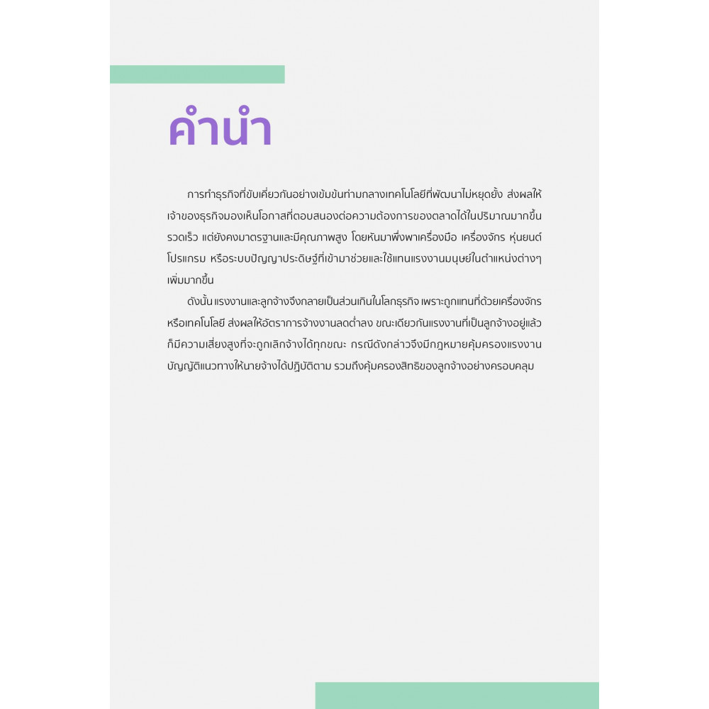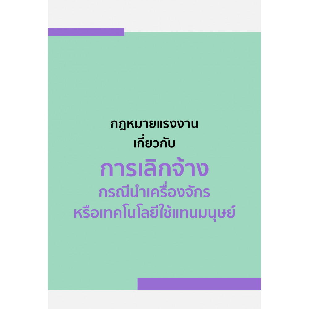 กฎหมายคุ้มครองแรงงานที่เกี่ยวข้องนายจ้างที่ต้องปฏิบัติเมื่อเลิกจ้างเพราะเหตุผลการนำเครื่องจักรหรือเทคโนโลยีมาใช้แทนที่มนุษย์ พร้อมด้วยตัวอย่างกรณีศึกษาที่น่าสนใจ สำหรับใช้เป็นแนวทางปฏิบัติที่ชัดเจนให้แก่ลูกจ้างและนายจ้าง ป้องกันปัญหาข้อพิพาทแรงงานในอนาคต