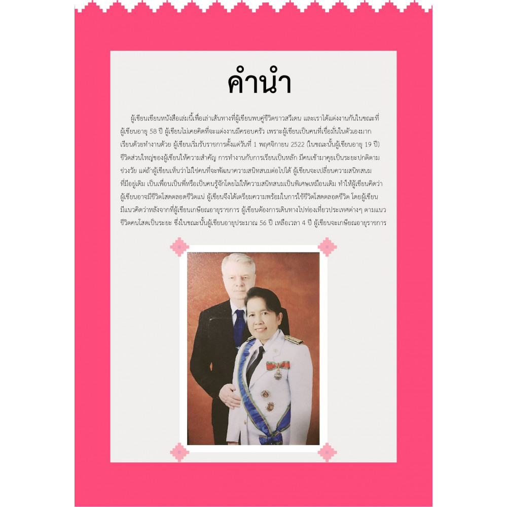 ผู้เขียนเขียนหนังสือเล่มนี้เพื่อเล่าเส้นทางที่ผู้เขียนพบคู่ชีวิตชาวสวีเดน และเราได้แต่งงานกันในขณะที่