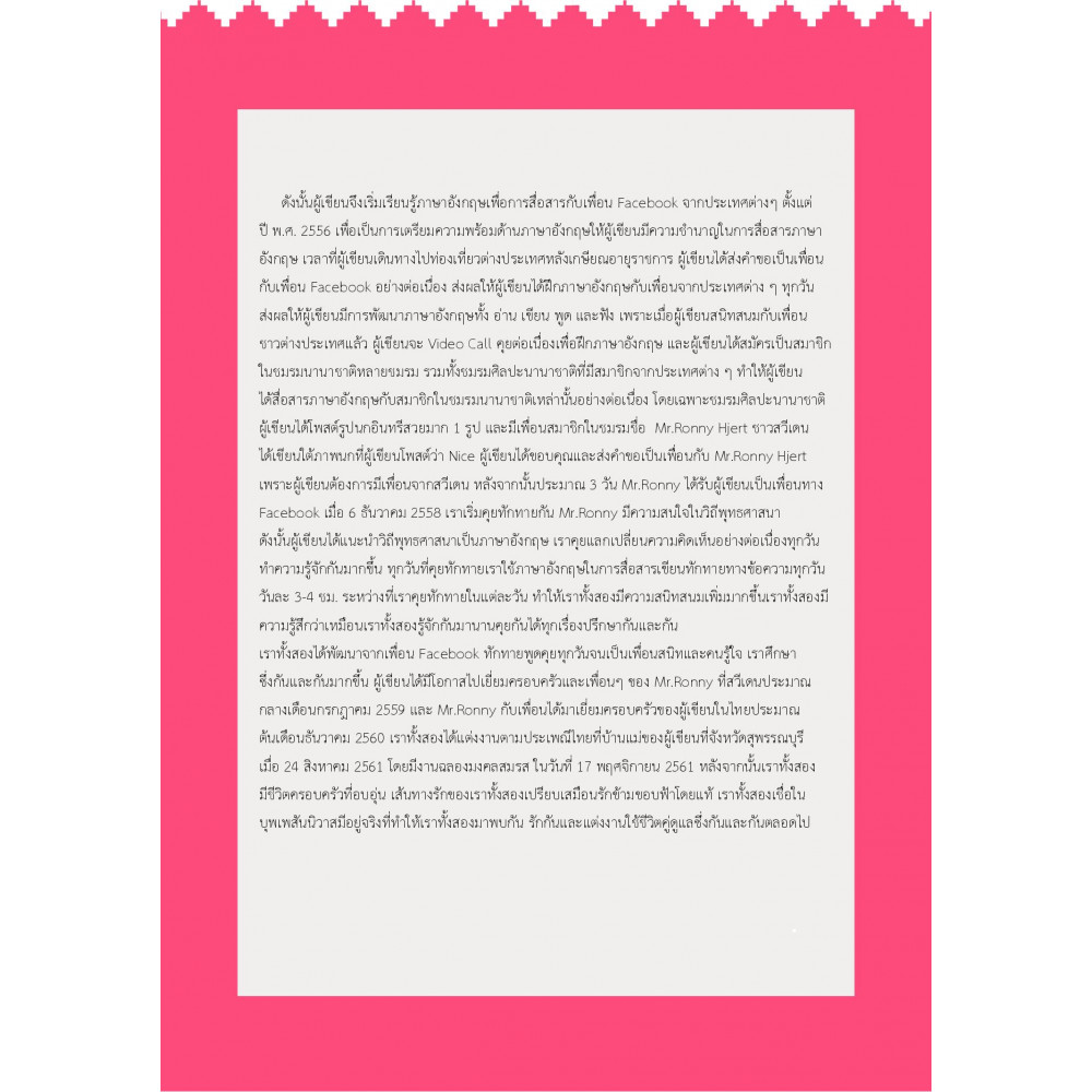 ชีวิตส่วนใหญ่ของผู้เขียนให้ความสำคัญ การทำงานกับการเรียนเป็นหลัก มีคนเข้ามาคุยเป็นระยะปกติตาม