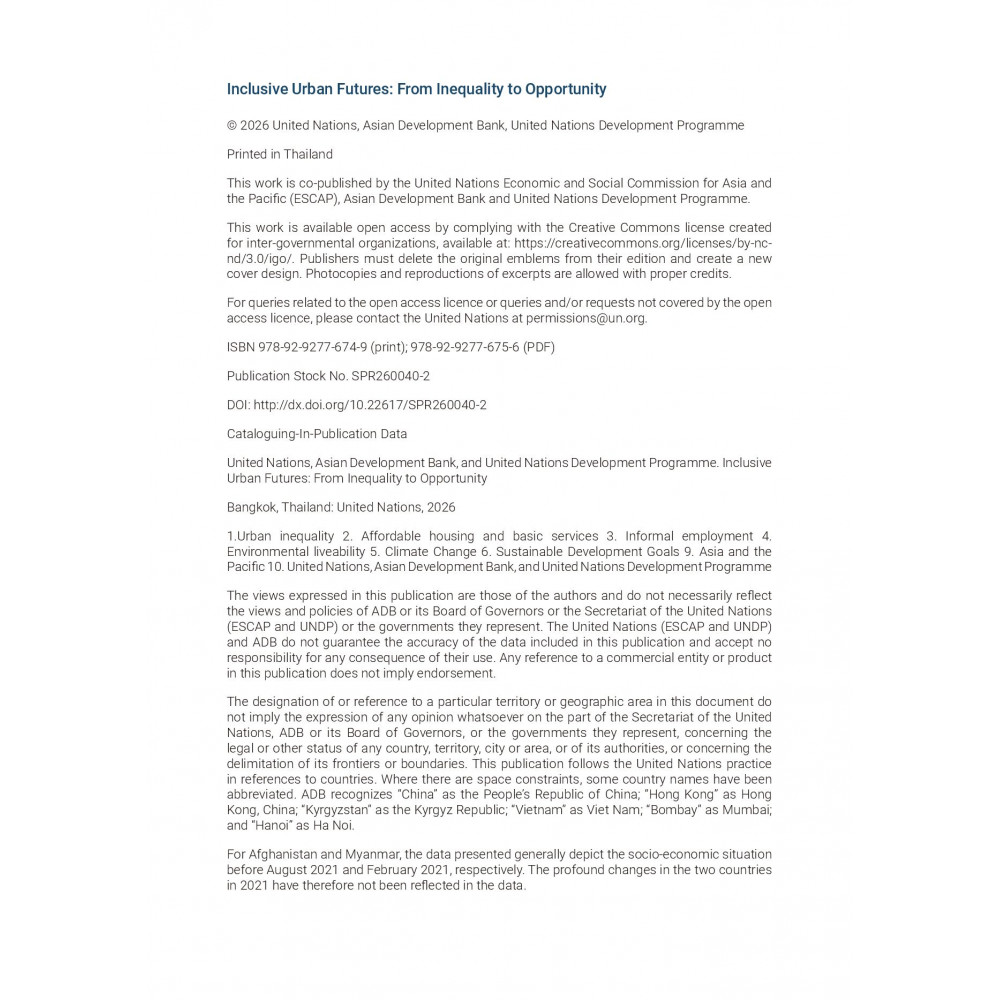 2026 Asia-Pacific SDG Partnership Report Inclusive Urban Futures: From Inequality to Opportunity