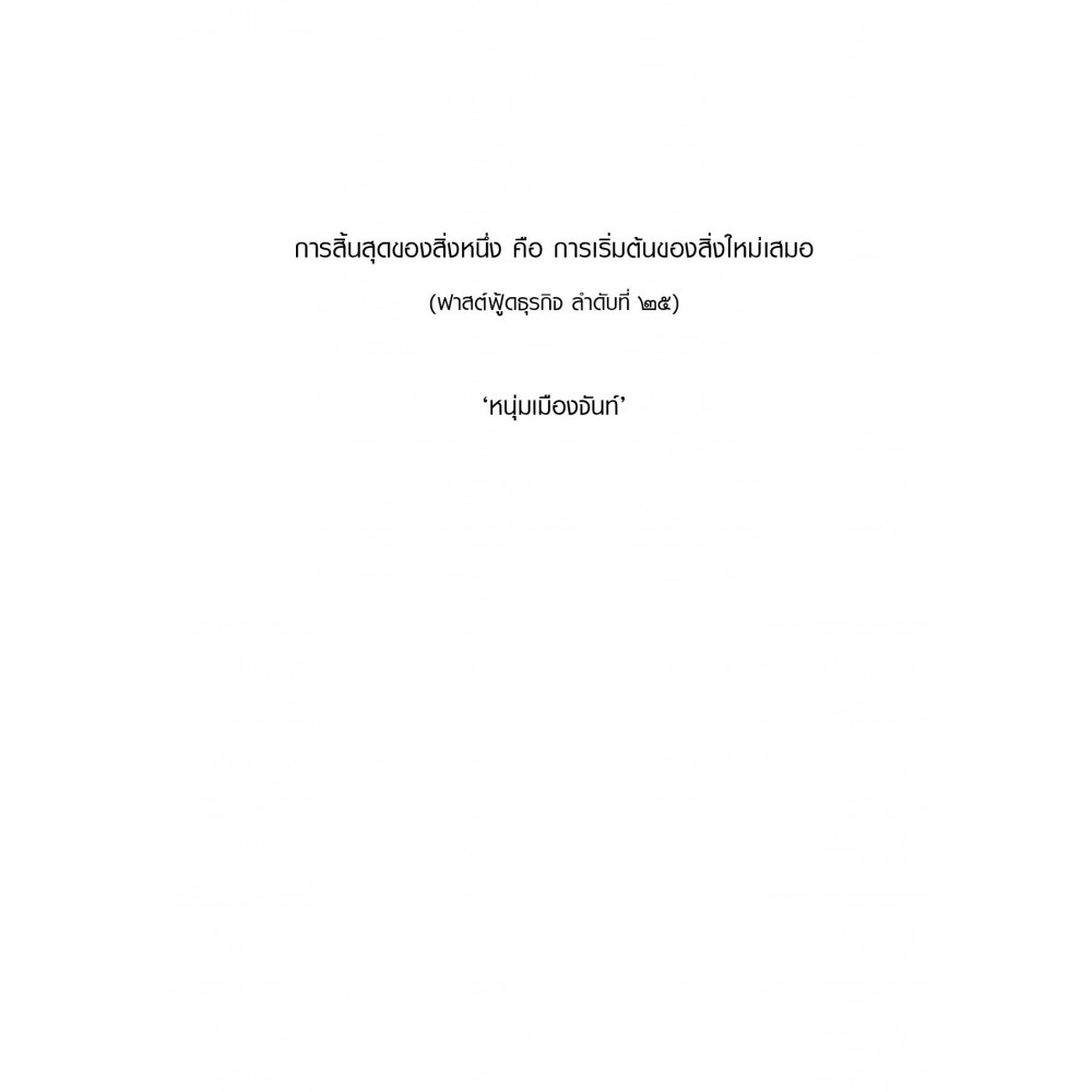 "“การสิ้นสุดของสิ่งหนึ่ง คือ การเริ่มต้นของสิ่งใหม่เสมอ” ฟาสต์ฟู้ดธุรกิจ ลำดับที่ 25 ของ “หนุ่มเมืองจันท์” ในเล่มนี้เขามาพร้อมกับแง่มุมคิด แรงบันดาลใจที่ชวนให้เราพร้อมจะก้าวเดินอีกครั้ง