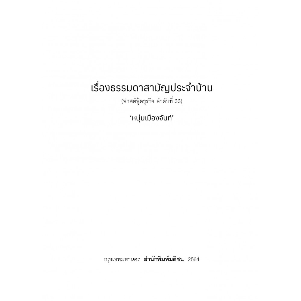 หลายคนให้ความสำคัญกับ “เรื่องใหญ่ๆ” ในชีวิต เพราะคิดว่าเป็น “เรื่องไม่ธรรมดา” ที่ควรค่าแก่ความสนใจ จนอาจลืมไปว่าชีวิตของเรานั้น ต้องเจอ “เรื่องเล็กๆ” ที่เป็น “เรื่องธรรมดา” ทุกวัน แค่พลิกมุมคิด… บางที “เรื่องธรรมดา” อาจกลายเป็น “เรื่องไม่ธรรมดา” ไปก็ได้ ‘หนุ่มเมืองจันท์’ และฟาสต์ฟู้ดธุรกิจลำดับที่ 33 มาพร้อมเรื่องราวสุดแสนธรรมดาจากการดูซีรีส์ อ่านหนังสือ ฟังเพลง เล่นโซเชียลมีเดีย สนทนากับผู้คน จนถึงการเล่นคลับเฮาส์ที่ผ่านการตกตะกอนทางความคิดมาเล่าสู่กันฟัง