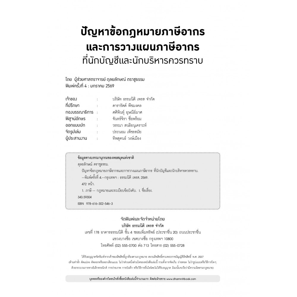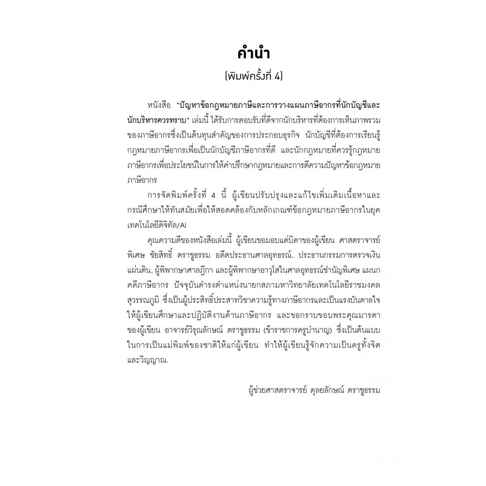 ปัญหาข้อกฎหมายภาษีอากรและวางแผนภาษีอากรที่นักบัญชี และนักบริหารควรทราบ (พิมพ์ครั้งที่ 4)