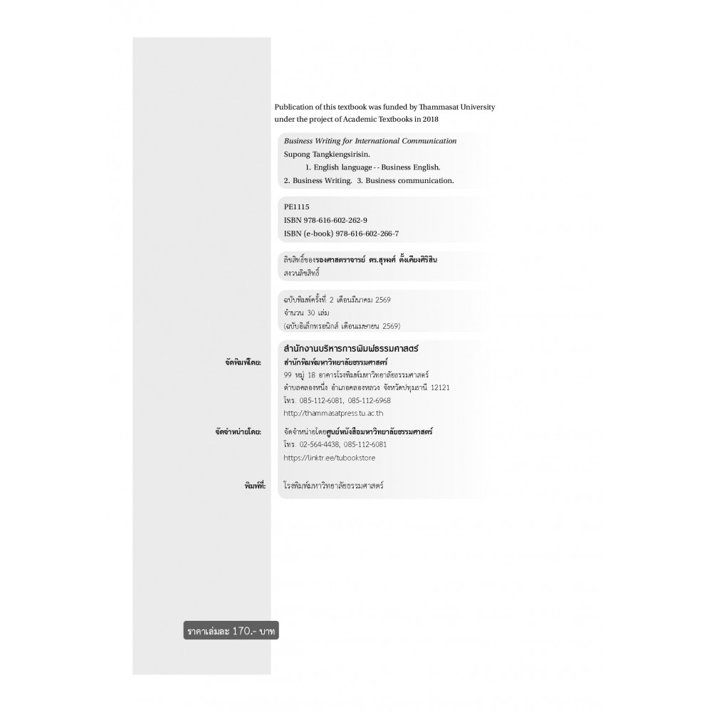 This book, Business Writing for International Communication, aims to help learners of English sharpen their business writing skills. The focus of this book is on principles, guidelines, and techniques for writing emails, letters, or memos in business-related contexts. Consisting of eight chapters, this course book starts with the basic principles of written business communication and continues to describe and justify the writing process. Subsequent to that is the discussion of the major types of business messages, including neutral and positive messages, negative messages, and persuasive messages. This book ends with a chapter on guidelines for business writing in intercultural settings.