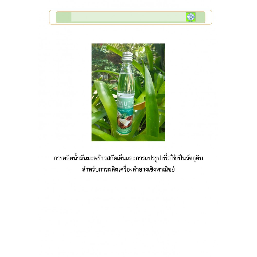 การผลิตน้ํามันมะพร้าวสกัดเย็นและการแปรรูปเพื่อใช้เป็นวัตถุดิบ สําหรับการผลิตเครื่องสําอางเชิงพาณิชย์