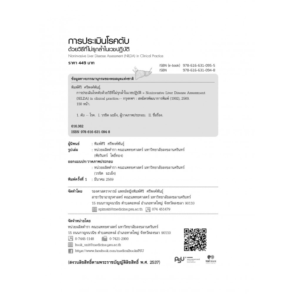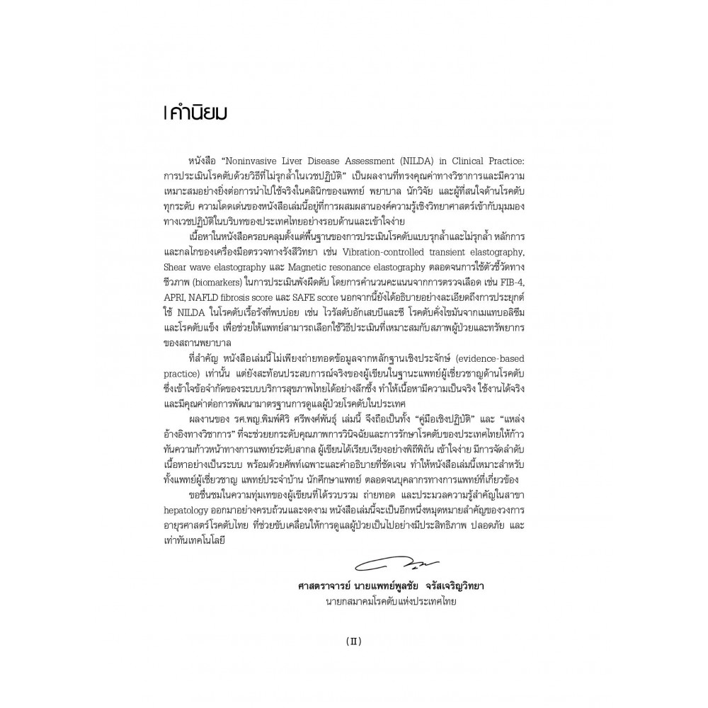 เมื่อ "การตรวจขึ้นเนื้อตับ" ไม่ใช่คำตอบเดียวของการประเมินโรค... ก้าวข้ามขีดจำกัดเดิม ๆ สู่ยุคสมัยของ Noninvasive Liver Disease Assessment (NILDA) หนังสือเล่มนี้รวบรวมเทคโนโลยีล่าสุด ทั้งด้านรังสีวิทยา (เช่น VCTE, SWE, MRE) และการตรวจเลือด (FIB-4, APRI, SAFE score) มาไว้ในที่เดียว ㆍ ครอบคลุมทุกโรคตับเรื้อรัง : เจาะลึกแนวทางปฏิบัติสำหรับ Viral Hepatititis, MASLD, โรคตับจากแอลกอฮอล์ และตับแข็ง ㆍใช้ได้จริงในไทย : คัดสรรเครื่องมือที่มีอยู่จริงในระบบสุขภาพไทย เพื่อการจัดการทรัพยากรที่คุ้มค่า ㆍจากวิจัยสู่เวชปฏิบัติ : อธิบายหลักการทางสถิติที่ซับซ้อน ให้เข้าใจง่ายขึ้น และรวมแนวทางปฏิบัติที่ใช้ได้จริง เช่น การตรวจแบบลำดับขั้น (Sequential NILDA) และ Rule-of-Five / Rule-of-Four เหมาะสำหรับแพทย์ผู้เชี่ยวชาญ แพทย์เวชปฏิบัติทั่วไป แพทย์ประจำบ้าน นักศึกษาแพทย์ พยาบาล ตลอดจนบุคลากรทางการแพทย์ที่ต้องการยกระดับคุณภาพการดูแลผู้ป่วยโรคดับให้ก้าวกันเทคโนโลยีระดับสากล