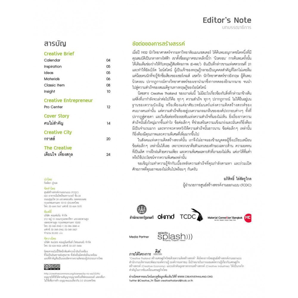นิตยสารส่งเสริมความคิดสร้างสรรค์ผลักดันเศรษฐกิจไทย โดย TCDC จัดทำนิตยสารฉบับแจกฟรีรายเดือน เพื่อสร้างแรงบันดาลใจให้สังคมเล็งเห็นความสำคัญของ ?ความคิดสร้างสรรค์? ในฐานะปัจจัยการผลิตหลักสำหรับเศรษฐกิจไทยในอนาคต เพื่อรองรับต่อการพัฒนาของกระบวนทัศน์ใหม่ที่ขยา