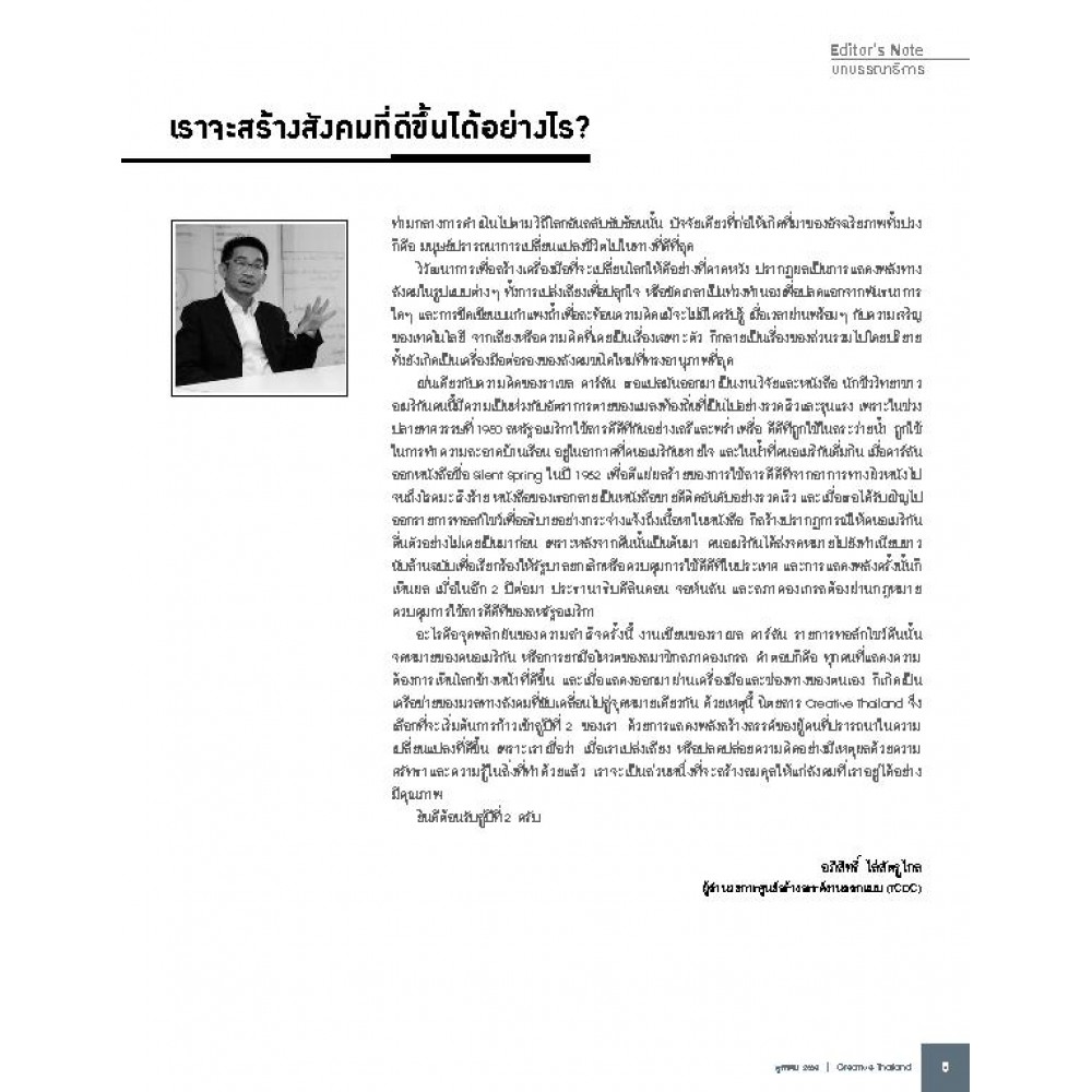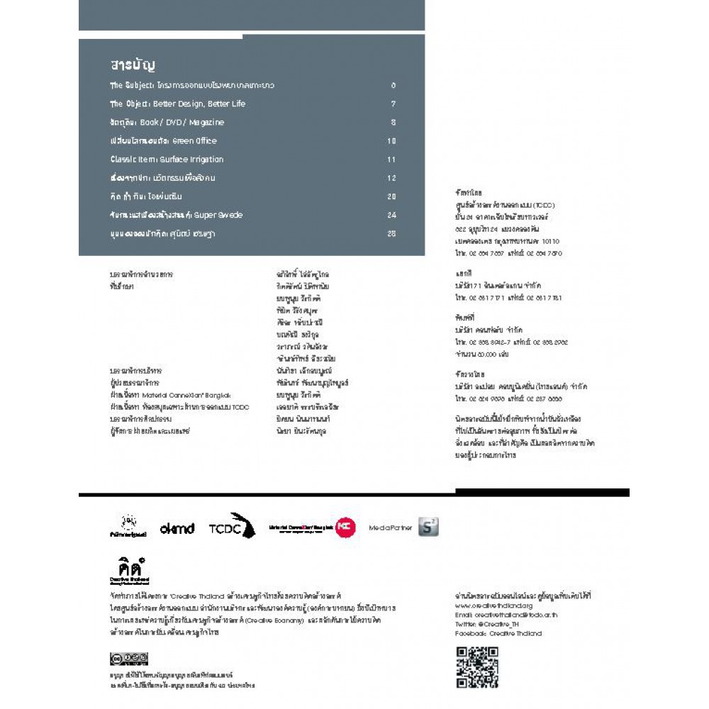 นิตยสารส่งเสริมความคิดสร้างสรรค์ผลักดันเศรษฐกิจไทย โดย TCDC จัดทำนิตยสารฉบับแจกฟรีรายเดือน เพื่อสร้างแรงบันดาลใจให้สังคมเล็งเห็นความสำคัญของ ?ความคิดสร้างสรรค์? ในฐานะปัจจัยการผลิตหลักสำหรับเศรษฐกิจไทยในอนาคต เพื่อรองรับต่อการพัฒนาของกระบวนทัศน์ใหม่ที่ขยา