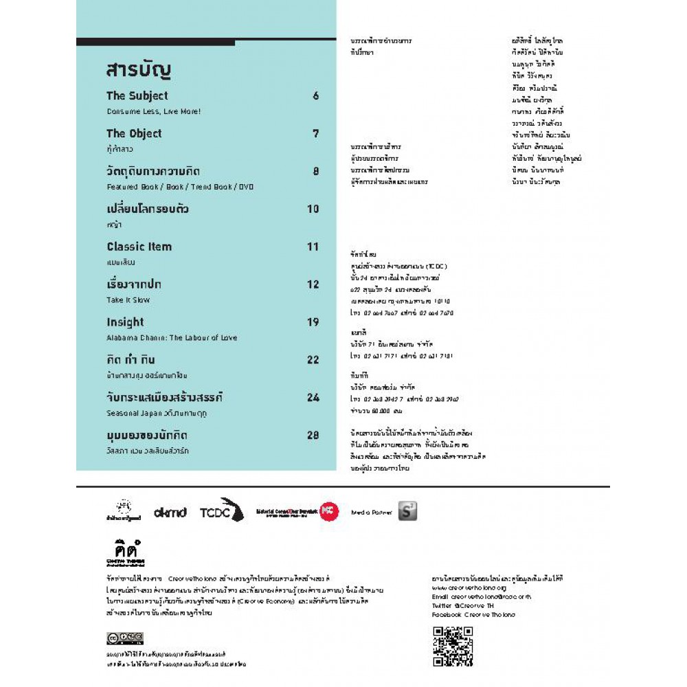 นิตยสารส่งเสริมความคิดสร้างสรรค์ผลักดันเศรษฐกิจไทย โดย TCDC จัดทำนิตยสารฉบับแจกฟรีรายเดือน เพื่อสร้างแรงบันดาลใจให้สังคมเล็งเห็นความสำคัญของ ?ความคิดสร้างสรรค์? ในฐานะปัจจัยการผลิตหลักสำหรับเศรษฐกิจไทยในอนาคต เพื่อรองรับต่อการพัฒนาของกระบวนทัศน์ใหม่ที่ขยา