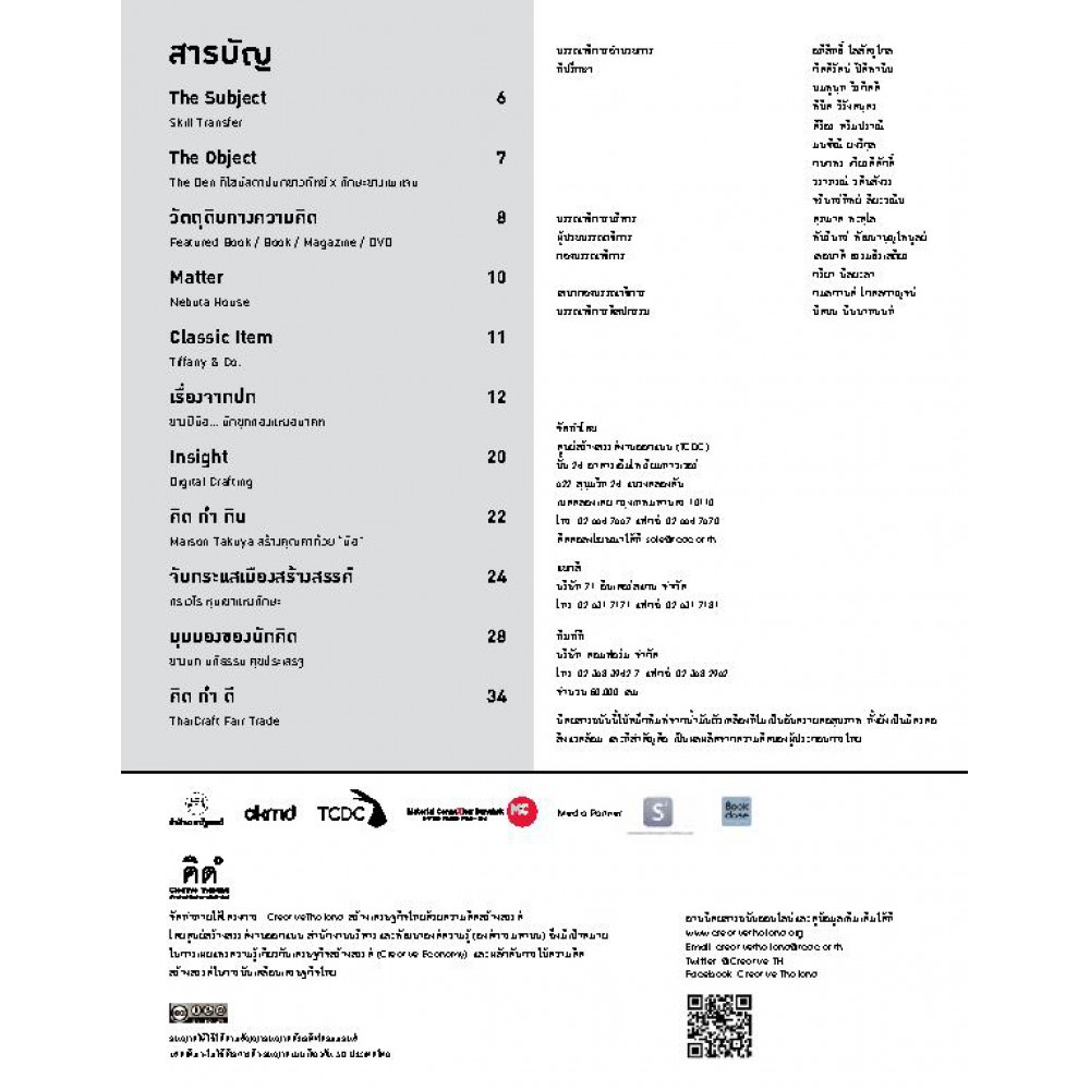 นิตยสารส่งเสริมความคิดสร้างสรรค์ผลักดันเศรษฐกิจไทย โดย TCDC จัดทำนิตยสารฉบับแจกฟรีรายเดือน เพื่อสร้างแรงบันดาลใจให้สังคมเล็งเห็นความสำคัญของ ?ความคิดสร้างสรรค์? ในฐานะปัจจัยการผลิตหลักสำหรับเศรษฐกิจไทยในอนาคต เพื่อรองรับต่อการพัฒนาของกระบวนทัศน์ใหม่ที่ขยา