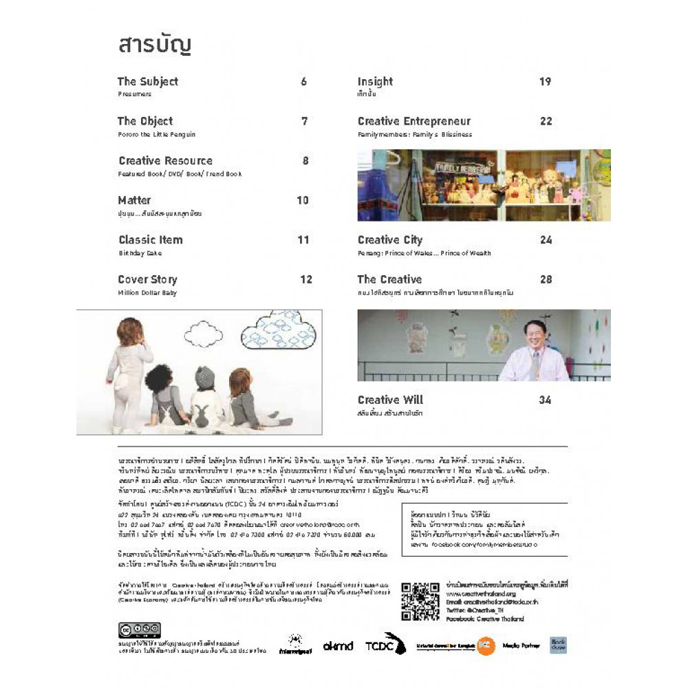 นิตยสารส่งเสริมความคิดสร้างสรรค์ผลักดันเศรษฐกิจไทย โดย TCDC จัดทำนิตยสารฉบับแจกฟรีรายเดือน เพื่อสร้างแรงบันดาลใจให้สังคมเล็งเห็นความสำคัญของ ?ความคิดสร้างสรรค์? ในฐานะปัจจัยการผลิตหลักสำหรับเศรษฐกิจไทยในอนาคต เพื่อรองรับต่อการพัฒนาของกระบวนทัศน์ใหม่ที่ขยา