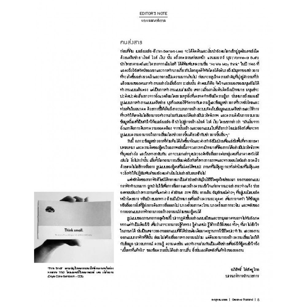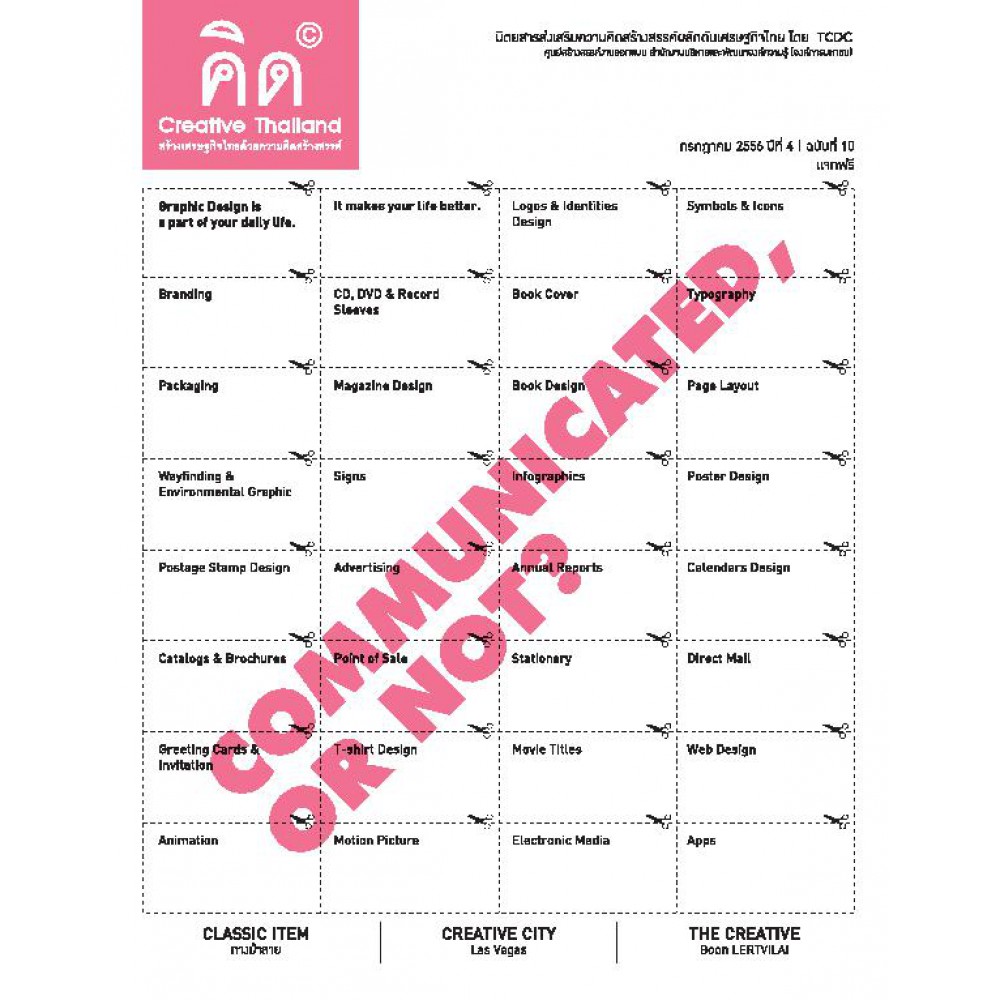 นิตยสารส่งเสริมความคิดสร้างสรรค์ผลักดันเศรษฐกิจไทย โดย TCDC จัดทำนิตยสารฉบับแจกฟรีรายเดือน เพื่อสร้างแรงบันดาลใจให้สังคมเล็งเห็นความสำคัญของ ?ความคิดสร้างสรรค์? ในฐานะปัจจัยการผลิตหลักสำหรับเศรษฐกิจไทยในอนาคต เพื่อรองรับต่อการพัฒนาของกระบวนทัศน์ใหม่ที่ขยา