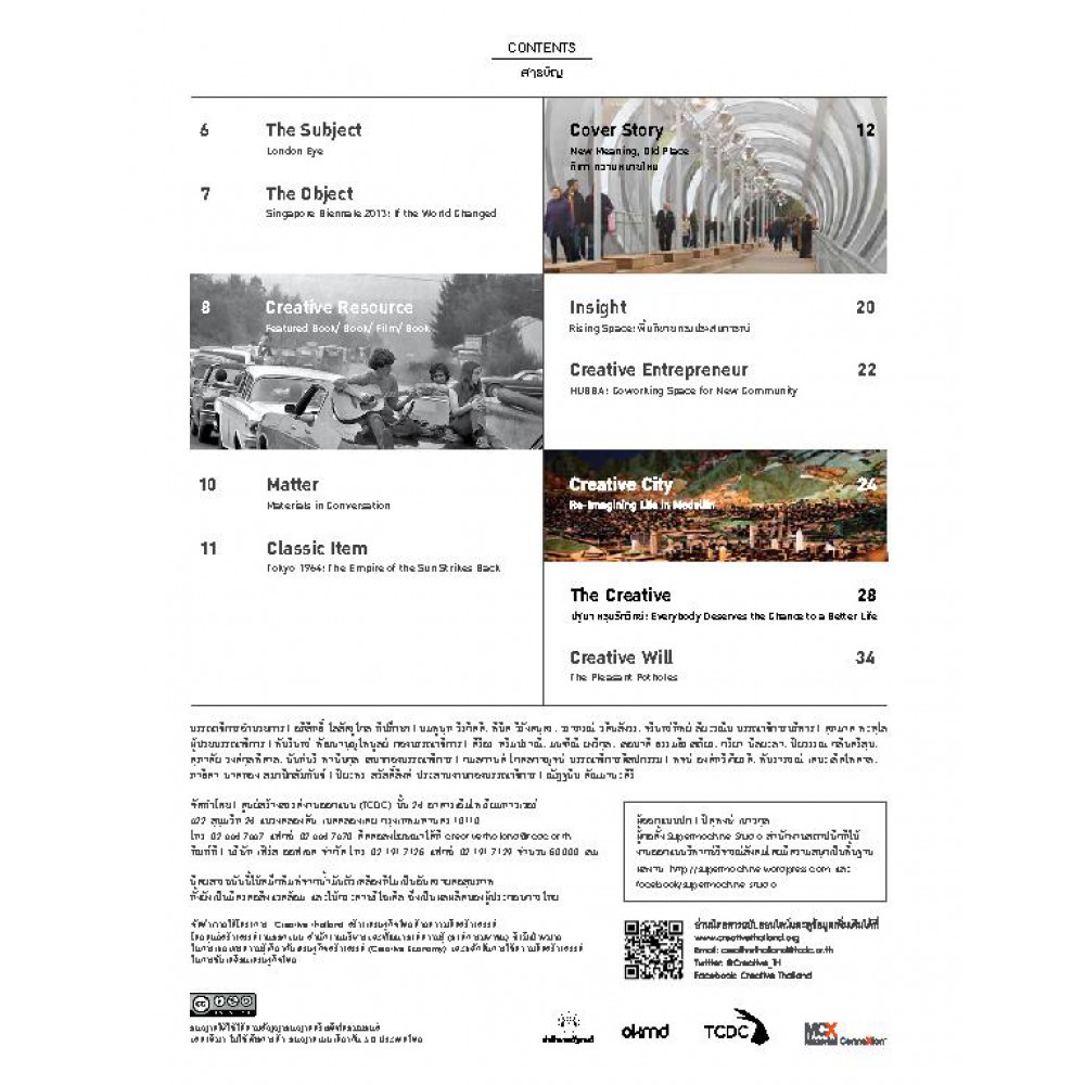 นิตยสารส่งเสริมความคิดสร้างสรรค์ผลักดันเศรษฐกิจไทย โดย TCDC จัดทำนิตยสารฉบับแจกฟรีรายเดือน เพื่อสร้างแรงบันดาลใจให้สังคมเล็งเห็นความสำคัญของ ?ความคิดสร้างสรรค์? ในฐานะปัจจัยการผลิตหลักสำหรับเศรษฐกิจไทยในอนาคต เพื่อรองรับต่อการพัฒนาของกระบวนทัศน์ใหม่ที่ขยา