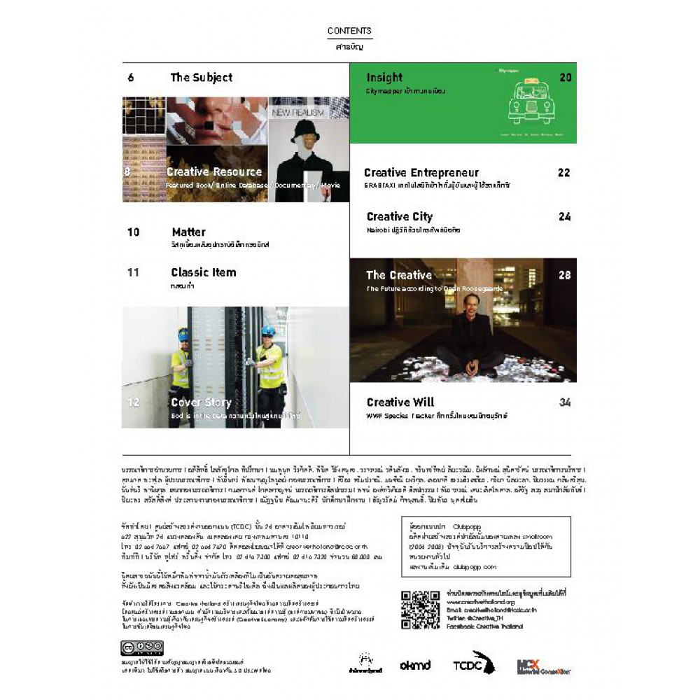 นิตยสารส่งเสริมความคิดสร้างสรรค์ผลักดันเศรษฐกิจไทย โดย TCDC จัดทำนิตยสารฉบับแจกฟรีรายเดือน เพื่อสร้างแรงบันดาลใจให้สังคมเล็งเห็นความสำคัญของ ?ความคิดสร้างสรรค์? ในฐานะปัจจัยการผลิตหลักสำหรับเศรษฐกิจไทยในอนาคต เพื่อรองรับต่อการพัฒนาของกระบวนทัศน์ใหม่ที่ขยา