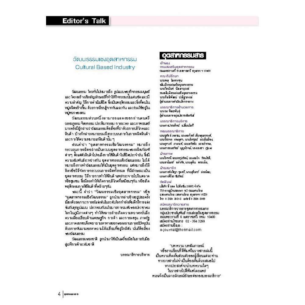 วารสารอุตสาหกรรมสารแต่ละฉบับ บรรจุเนื้อหาของอุตสาหกรรม โดยครอบคลุมเนื้อหาเกี่ยยวกับสภาวะทั่วไปของอุตสาหกรรมนั้น การผลิต การตลาด รูปแบบผลิตภัณฑ์ เว็บไซต์ที่เกี่ยวข้องกับอุตสาหกรรม การบริหาร การจัดการ และความสำเร็จของผู้ประกอบการ