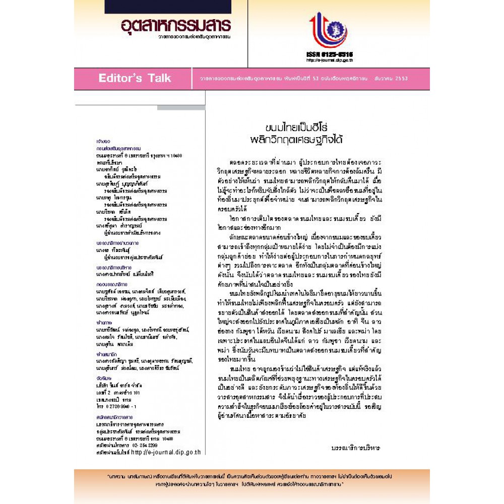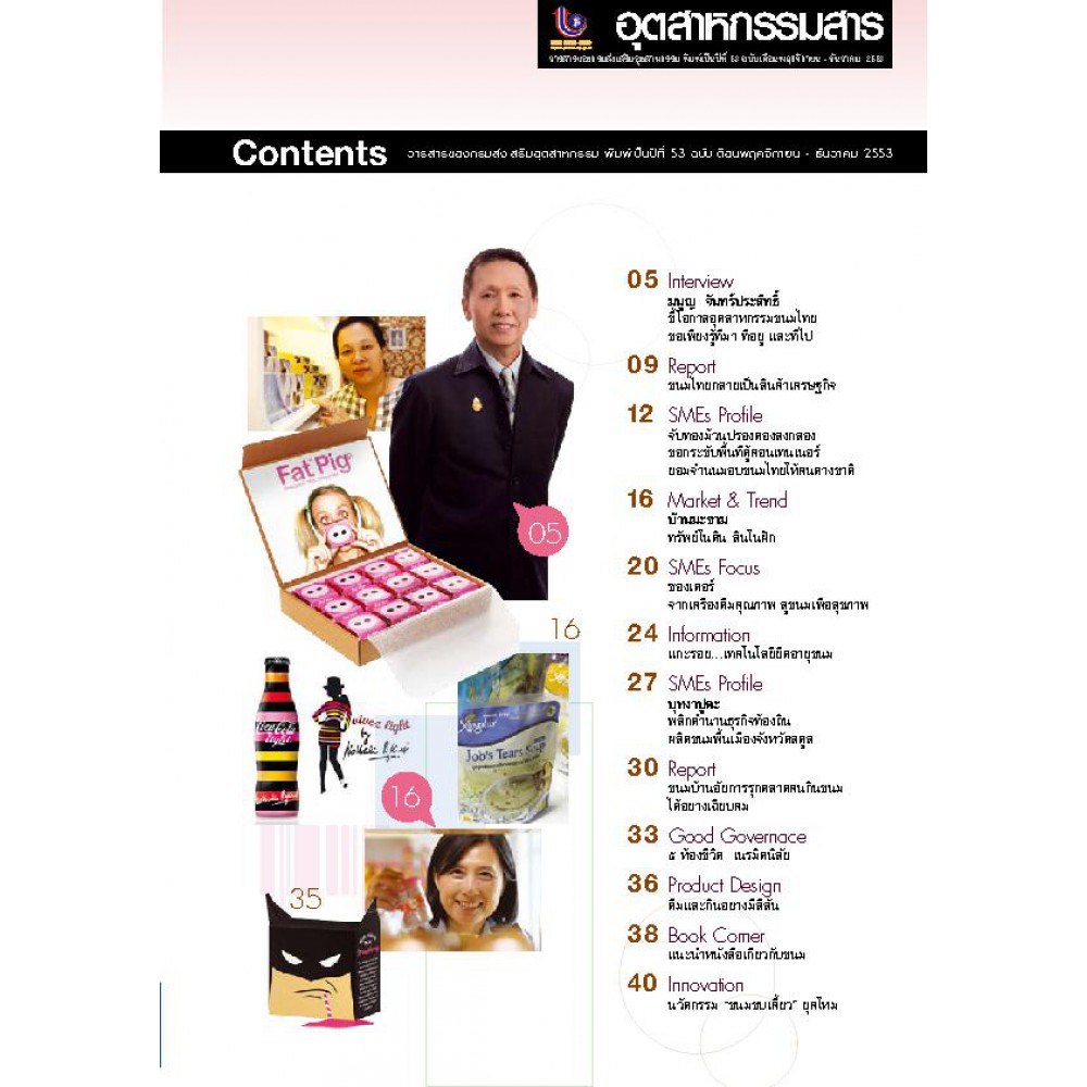 วารสารอุตสาหกรรมสารแต่ละฉบับ บรรจุเนื้อหาของอุตสาหกรรม โดยครอบคลุมเนื้อหาเกี่ยยวกับสภาวะทั่วไปของอุตสาหกรรมนั้น การผลิต การตลาด รูปแบบผลิตภัณฑ์ เว็บไซต์ที่เกี่ยวข้องกับอุตสาหกรรม การบริหาร การจัดการ และความสำเร็จของผู้ประกอบการ
