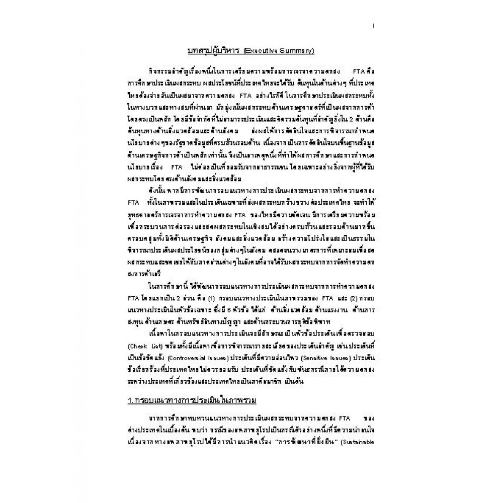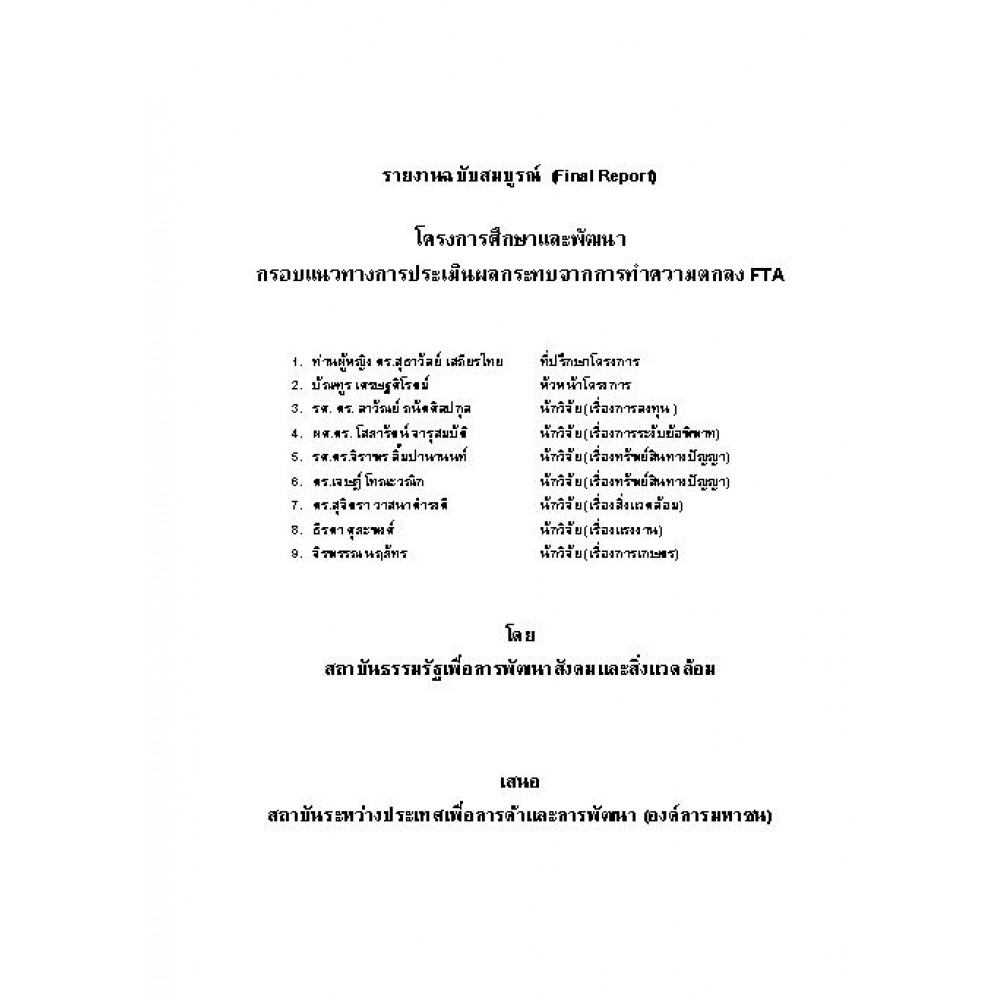 โครงการศึกษา และพัฒนากรอบแนวทางการประเมินผลกระทบจากการทำความตกลง FTA : ITD
