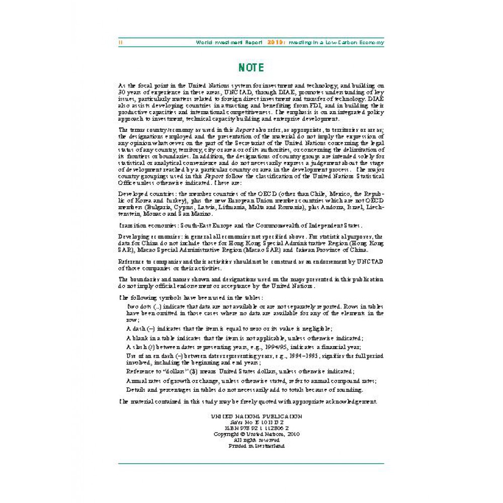 World Investment Report 2010 : Investing in A Low-Carbon Economy : ITD