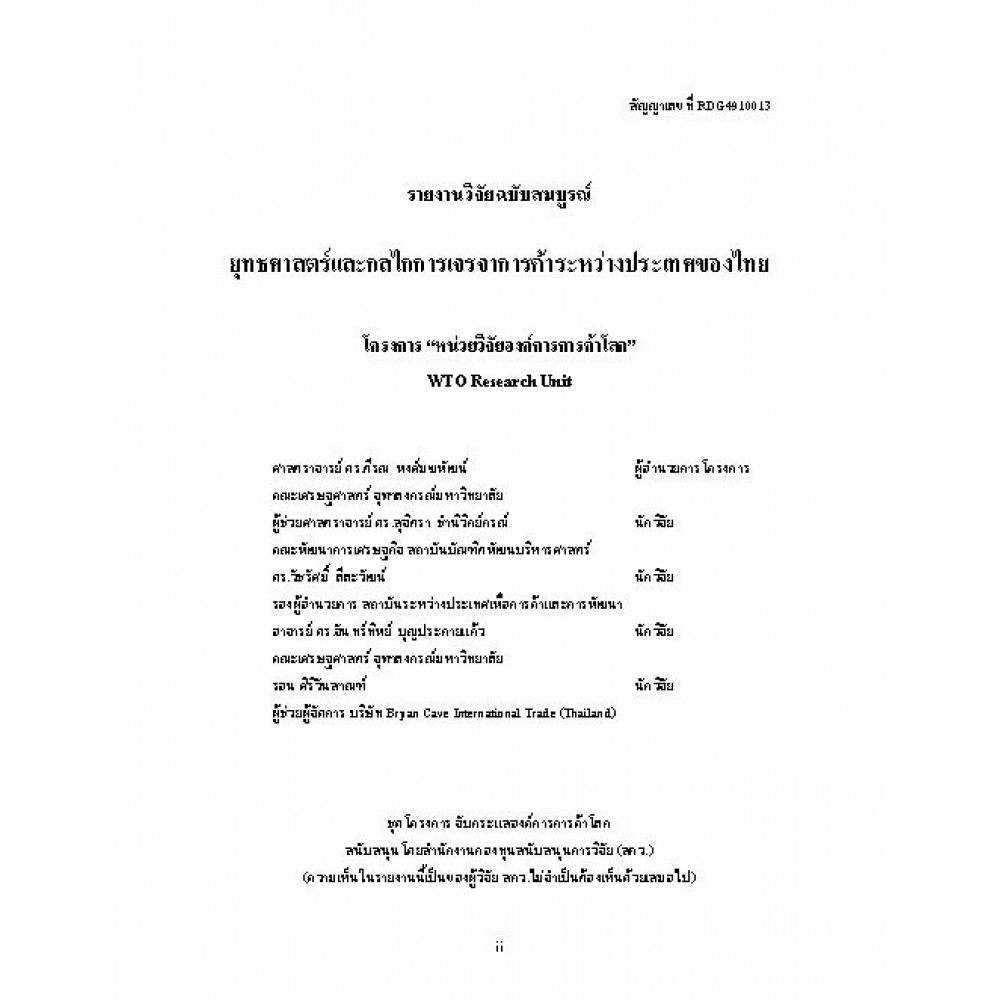 ยุทธศาสตร์และกลไกการเจรจาการค้าระหว่างประเทศของไทย โครงการ ?หน่วยวิจัยองค์การการค้าโ่ลก? (WTO Research Unit) : ITD