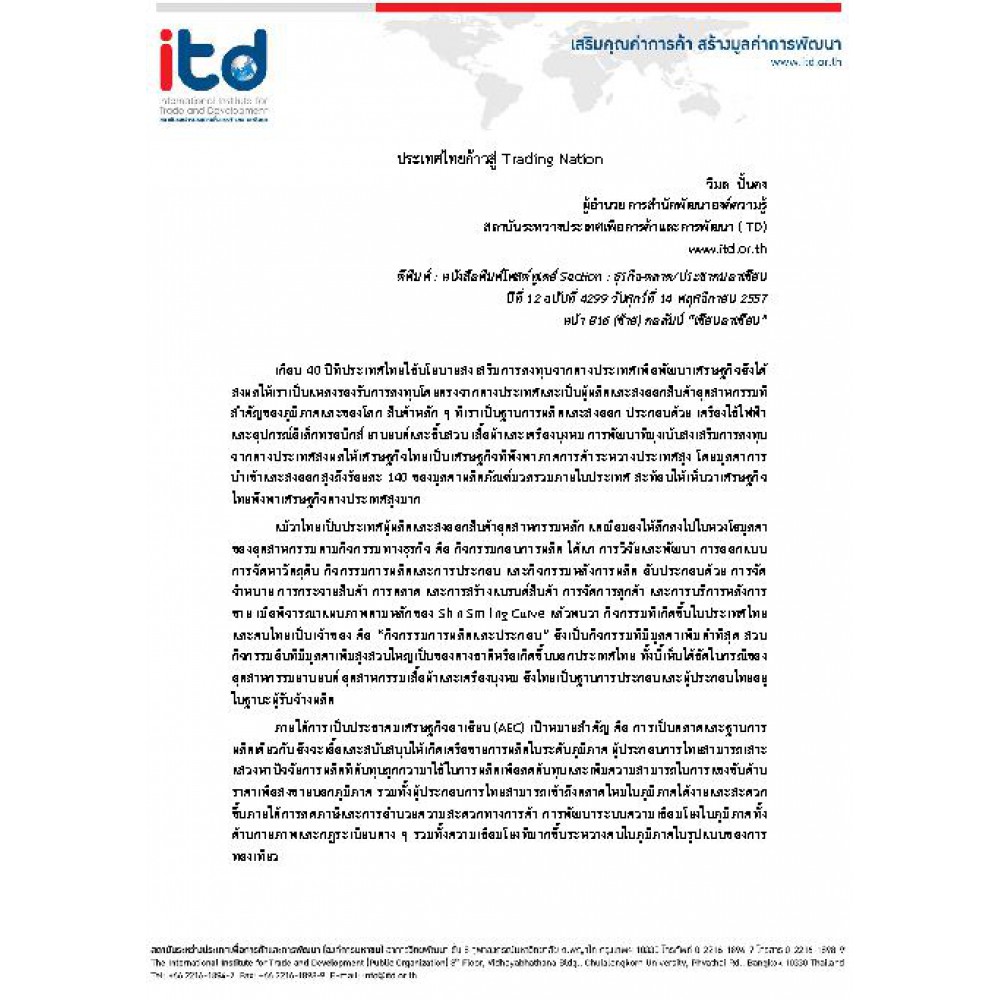 บทความวิจัยของสถาบันระหว่างประเทศเพื่อการค้าและการพัฒนา ITD