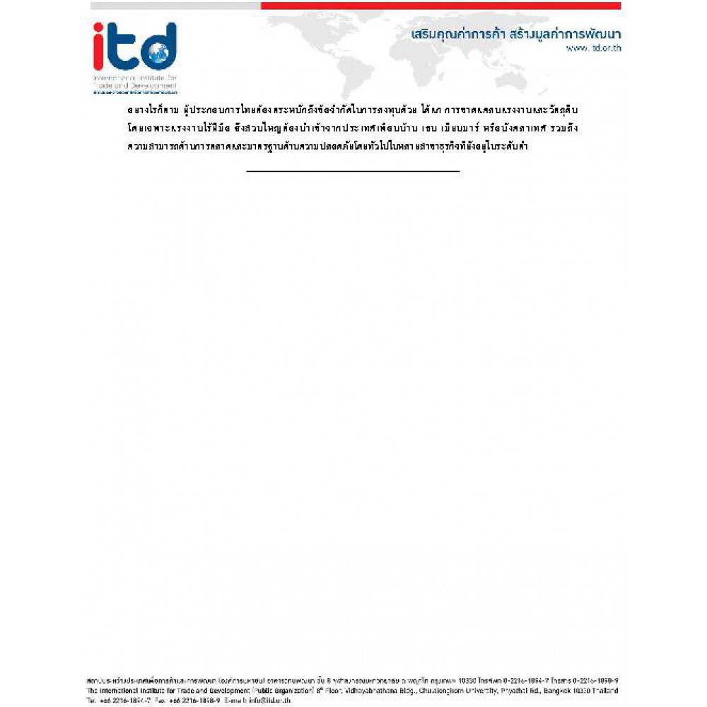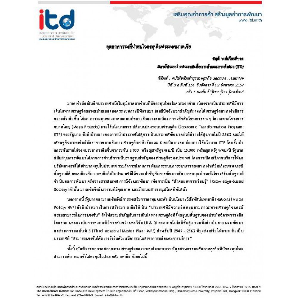 บทความวิจัยของสถาบันระหว่างประเทศเพื่อการค้าและการพัฒนา ITD